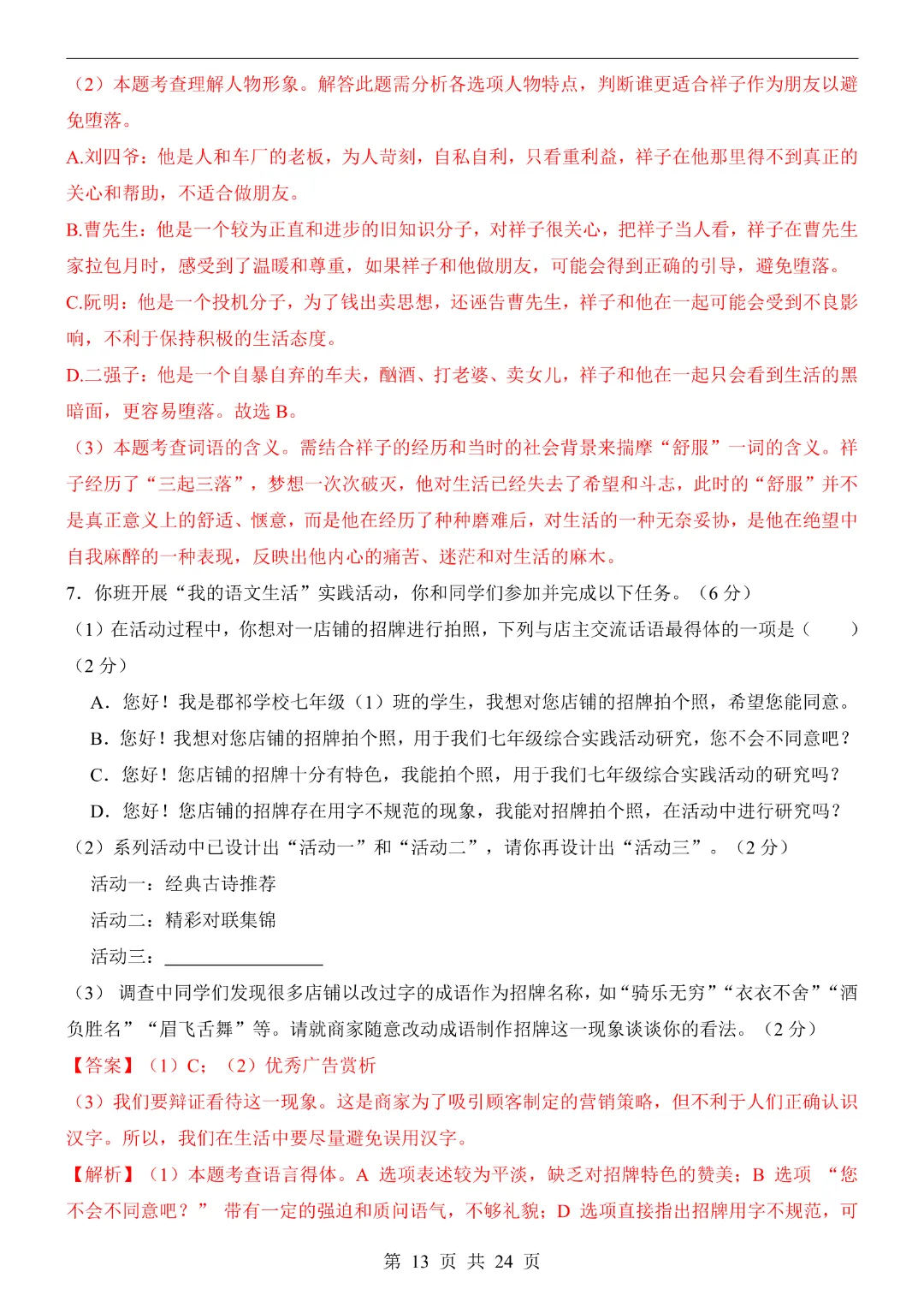 26春七年级下册语文期中测试卷|高清电子版可打印