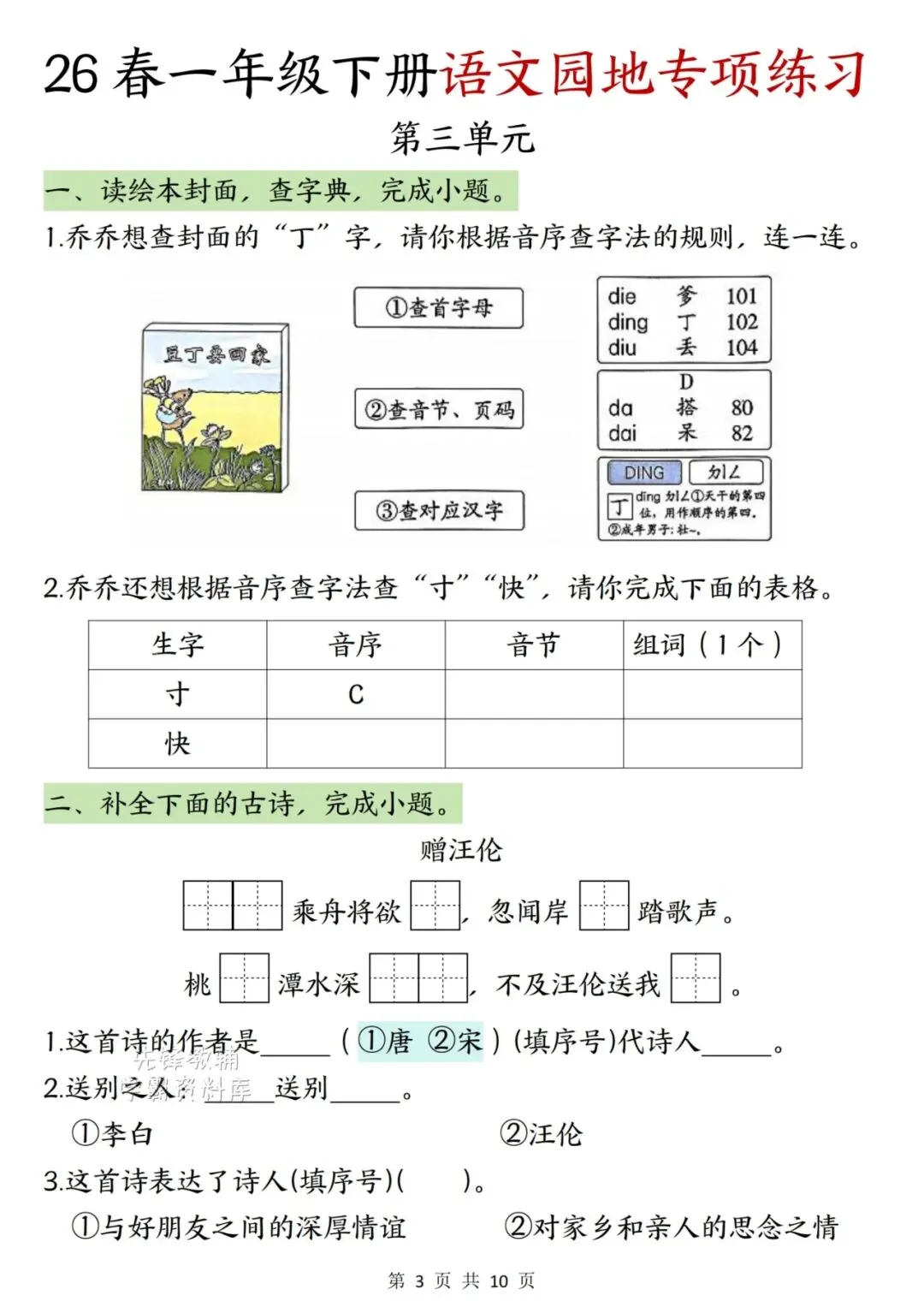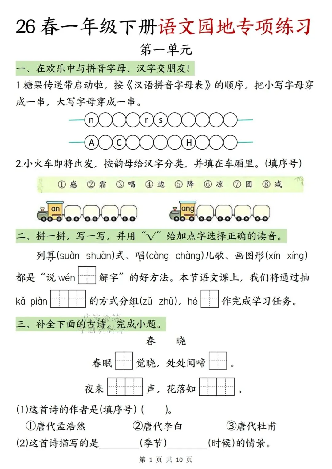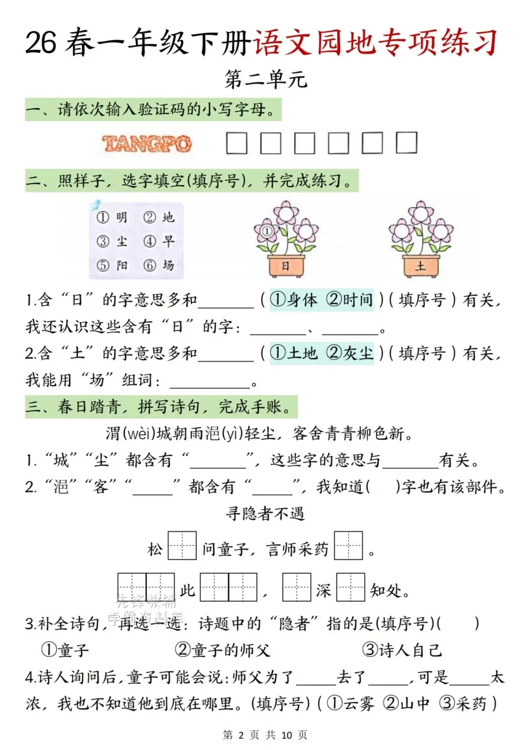 📚🔥26年新版一年级语文下册语文园地专项训练电子版可打印。今天给大家整理了这份《语文园地二专项特训》,紧扣课本考点。通过“情境填空+字理识字”的方式,帮孩子搞懂汉字规律,吃透古诗意境。题型新颖有趣,非常适合周末巩固基础!