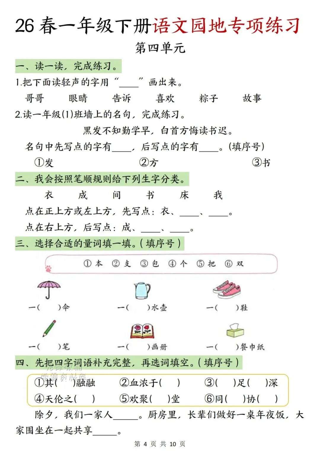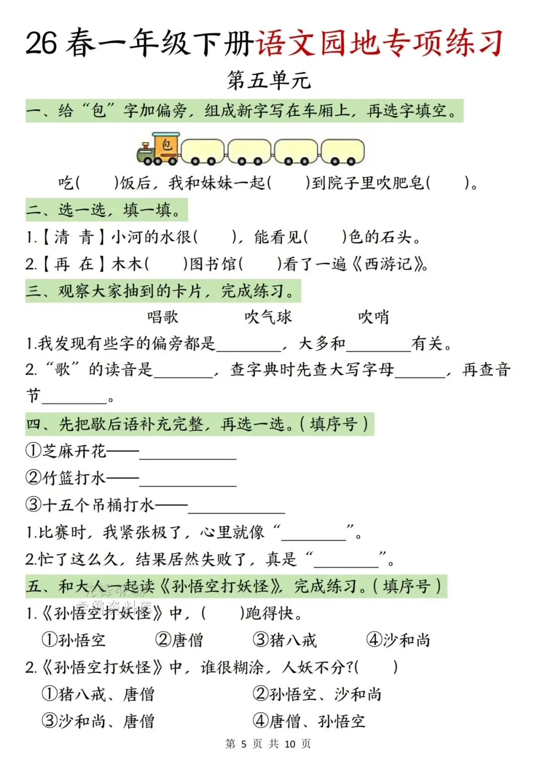26年最新版《一年级语文下册语文园地专项训练》电子版可打印