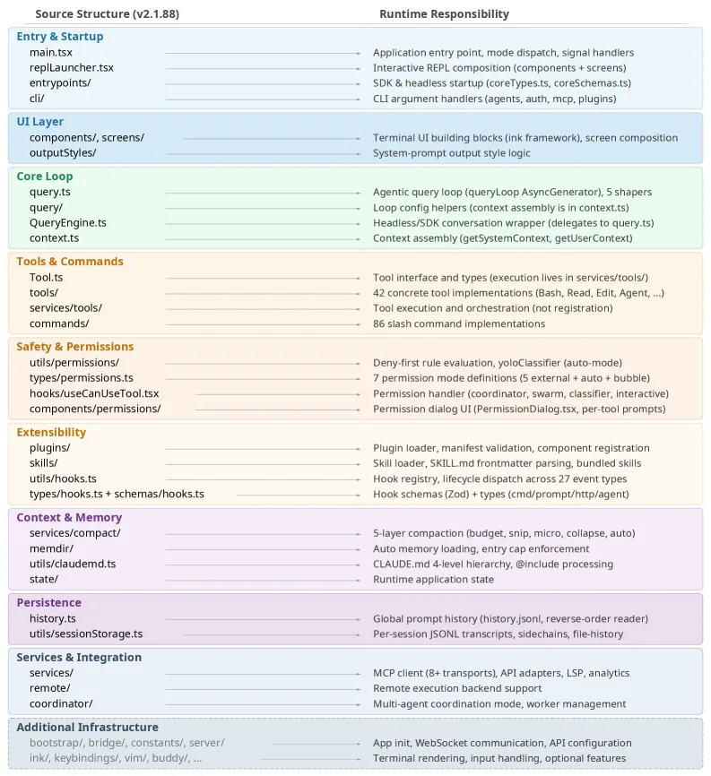 研究人员对 Claude Code 的源代码(v2.1.88 版本,已公开)进行了完整拆解。他们发现: