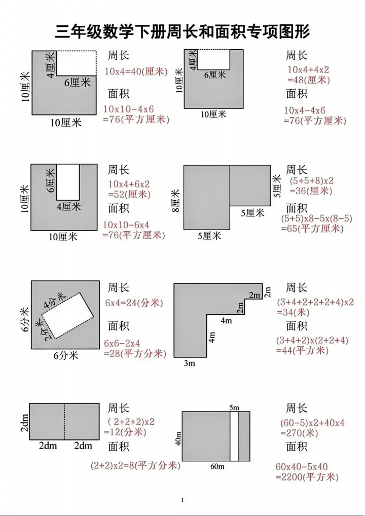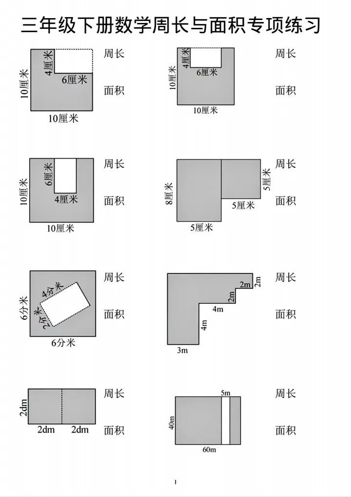 今日份分享三年级下册周长与面积专项练习(完整电子版可打印)!这份资料已经整理成可打印版本,方便孩子随时翻看学习,建议家长先收藏,再转发给身边有需要的家庭,一起帮助孩子高效学习~