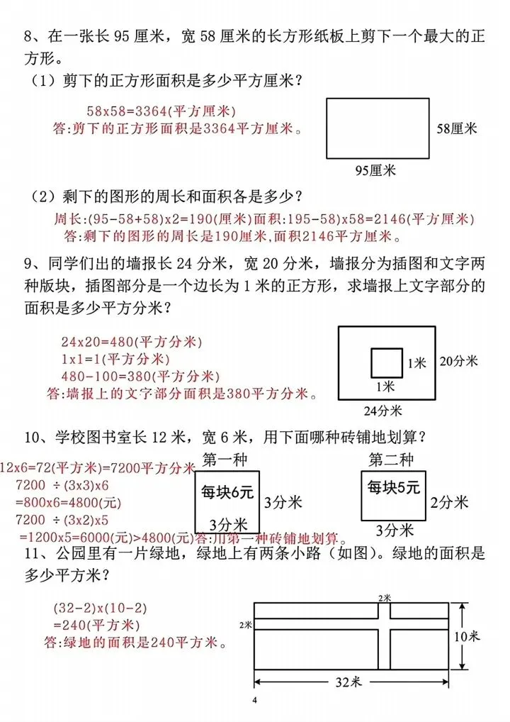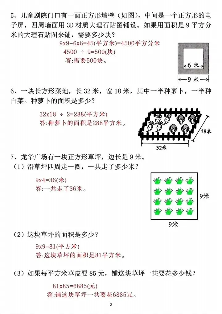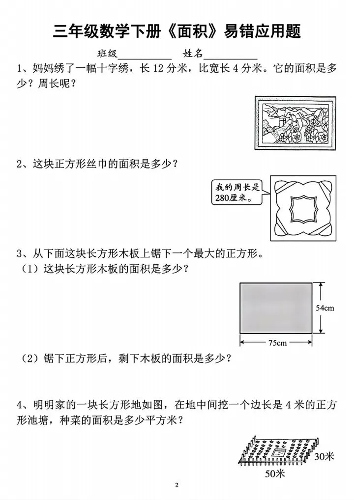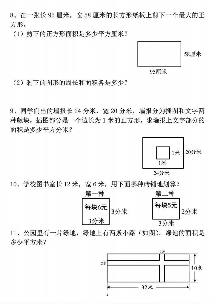 三年级下册周长与面积专项练习(完整电子版可打印)