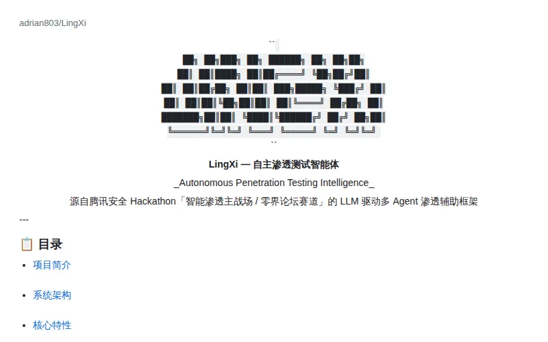 安全攻防领域的多 Agent 协作一直是个有意思的方向。单个 LLM 做安全审计能力有限,但多个 Agent 各司其职,有的负责侦察、有的负责漏洞利用、有的负责权限提升,效果完全不一样。LingXi 走的就是这条路,集成 Docker 环境、RAG 检索和 MCP 协议,还带了个 Web UI。
