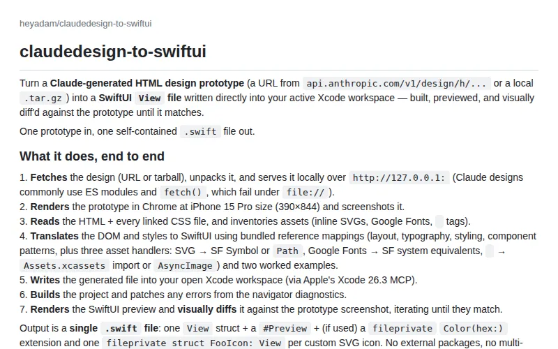 https://github.com/heyadam/claudedesign-to-swiftui