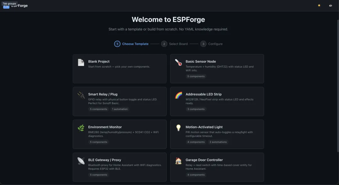 ESPHome 的 YAML 配置对新手不友好,每个组件的配置项多且文档分散。ESPForge 用 TypeScript + React 做了个直观的图形界面,覆盖 ESP32 和 ESP8266。对于 Home Assistant 用户来说,这个工具能显著降低智能家居设备的折腾门槛。