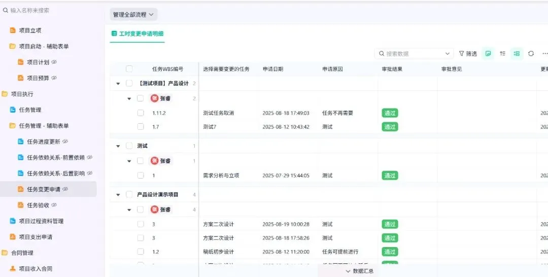 执行类:进度报表、任务清单、变更申请、变更确认、沟通纪要
