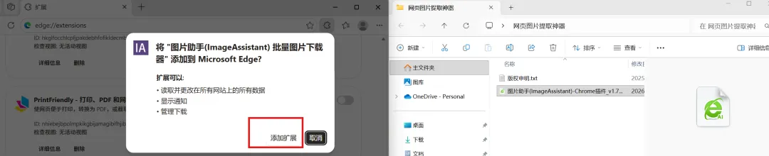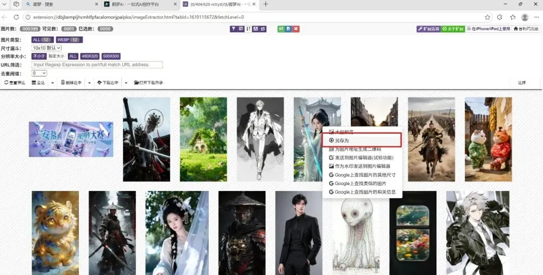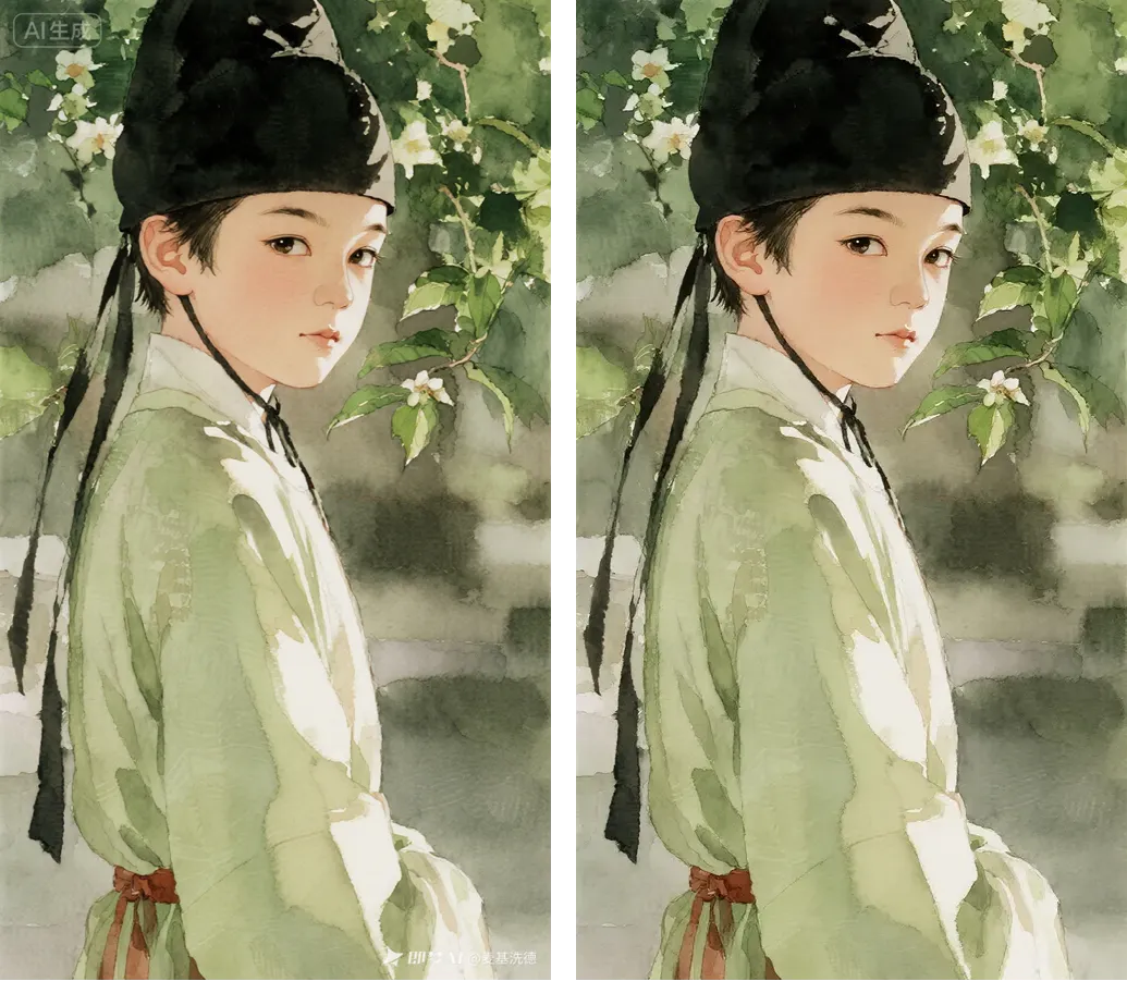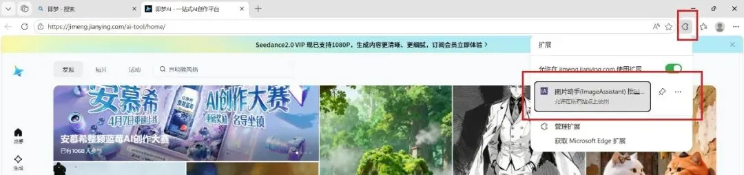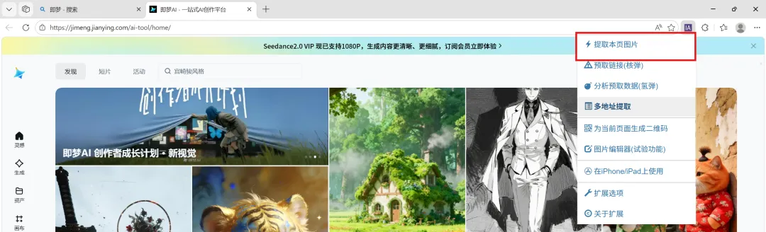 如果你也有跟我一样的困惑过。那么下面的“图片助手”插件你也很需要来一个。以即梦AI生成的图片为例。先看一下效果,左边的是即梦中直接下载的图片,右边的是用图片助手下载下来的图片。左边的有logo,有AI生成标记,右边什么都没有。