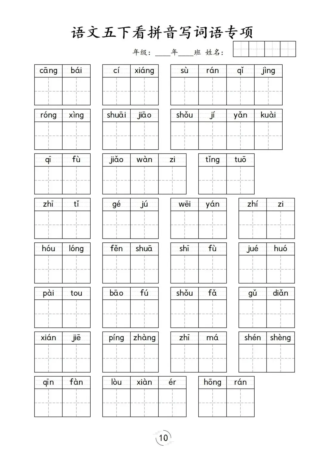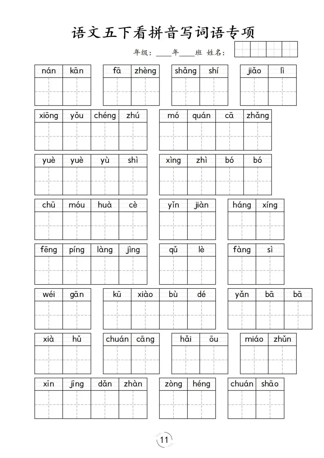 点击下方『阅读原文』进入五年级下册资料合集五年级下册第1-8单元看拼音写词语,可下载
