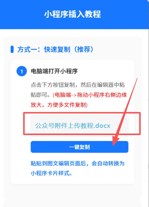 3.粘贴链接:小程序会自动将文件专属链接复制到剪贴板。在公众号文章要插入附件的位置,粘贴剪文件链接。