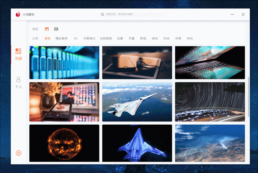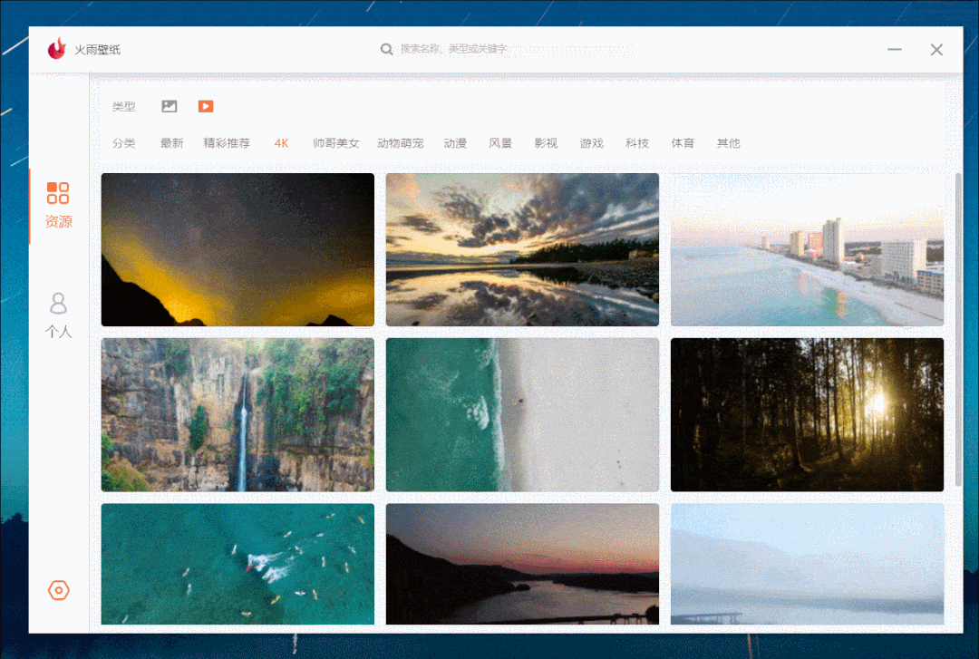 它完全免费,壁纸种类丰富,不仅提供了静态壁纸,也提供了动态壁纸,壁纸的质量也是非常高, 4K 和 1080P 分辨率的壁纸非常多。