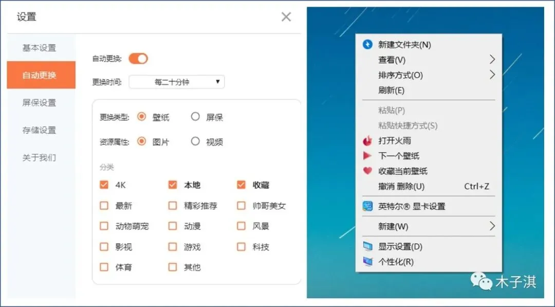 除了自动更换壁纸,它也支持手动更换壁纸,你可以在电脑桌面鼠标右键切换下一个壁纸。