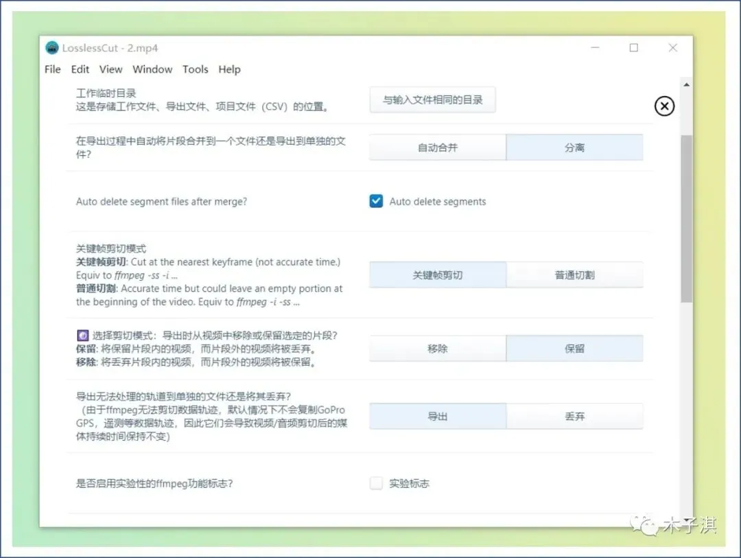 LosslessCut 是一个免费开源的轻量级视频、音频、字幕编辑软件;软件支持 WIndows 版本,支持 Mac 版本。