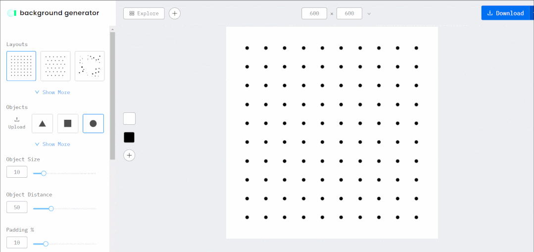 你可以发挥创意,生成丰富的精美图片背景,你也可以点击网站的 Explore 按钮,查看别人用这个网站生成的创意图片背景和对应的图片背景设置参数。