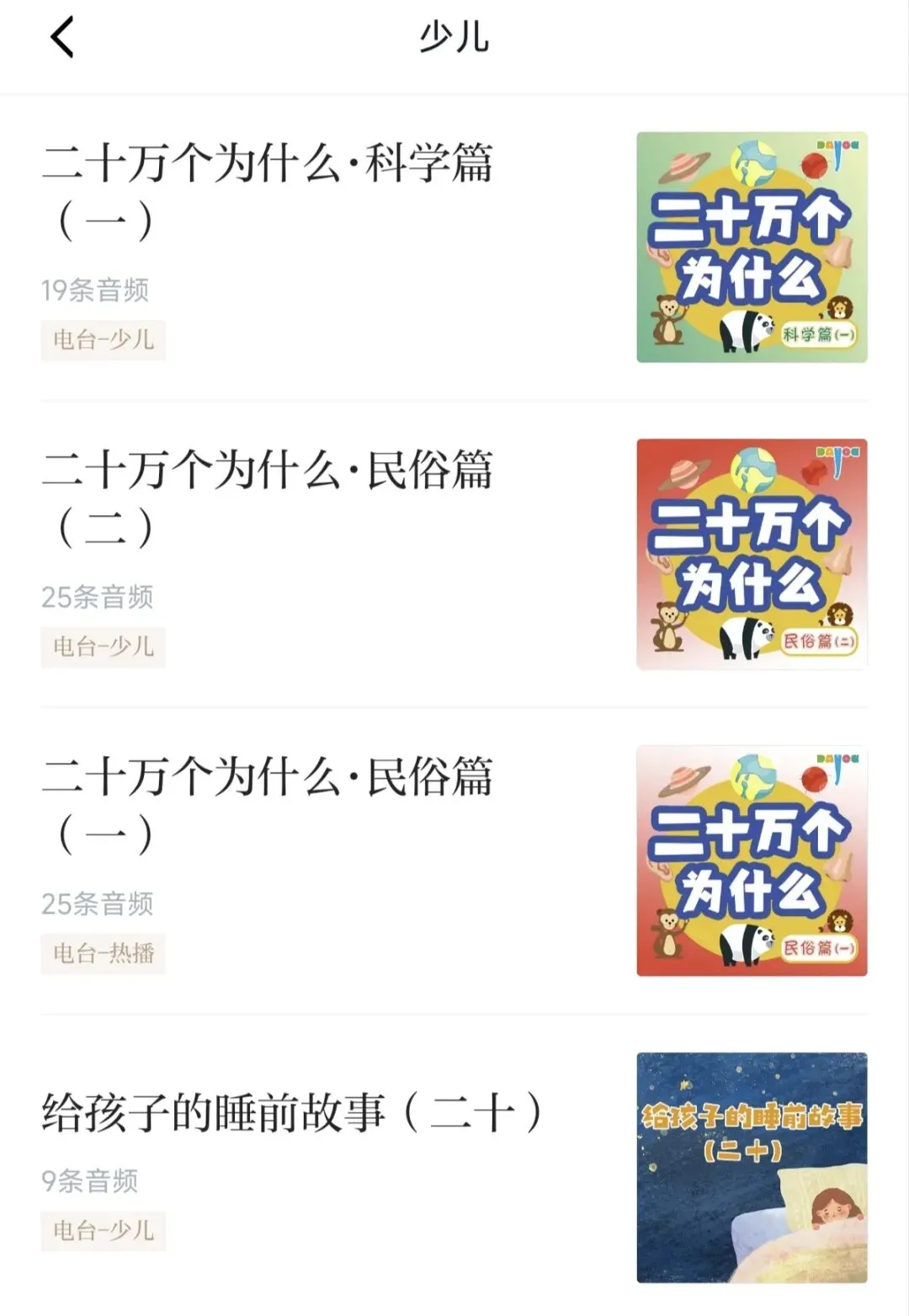 低龄宝宝能听有声故事、学国学诗词,中小学生能看科普动画、同步课程,还有《我是八路军》这类红色纪录片,既能涨知识,又能帮孩子建立正确的价值观。