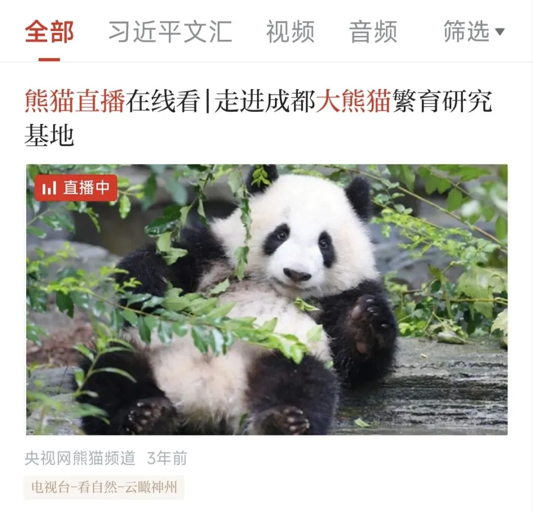 想解压?还有实时的「云撸熊猫」直播,看国宝吃竹子、打滚,摸鱼的时候看两眼,瞬间治愈。