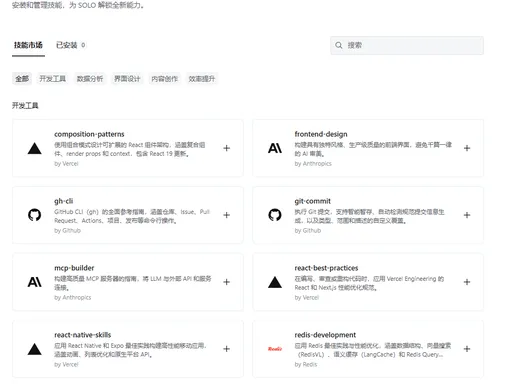 官方市场里现成技能一键下载,数据分析、文档处理、自媒体排版、自动化脚本…… 直接装即用。 -