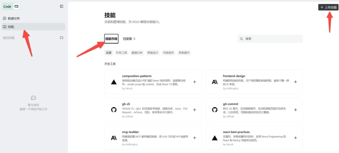 而且现在所有 Agent 产品都在做的 Skills(技能市场),它也直接拉满了: