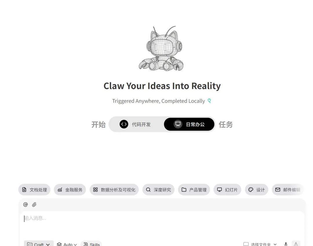 – Agent 模式:自动完成复杂任务 – 多工具协同:浏览器、代码、文件、搜索全覆盖 – 支持 Skills 扩展:专业领域知识库 – 公众号文章发布、自动化流程编排