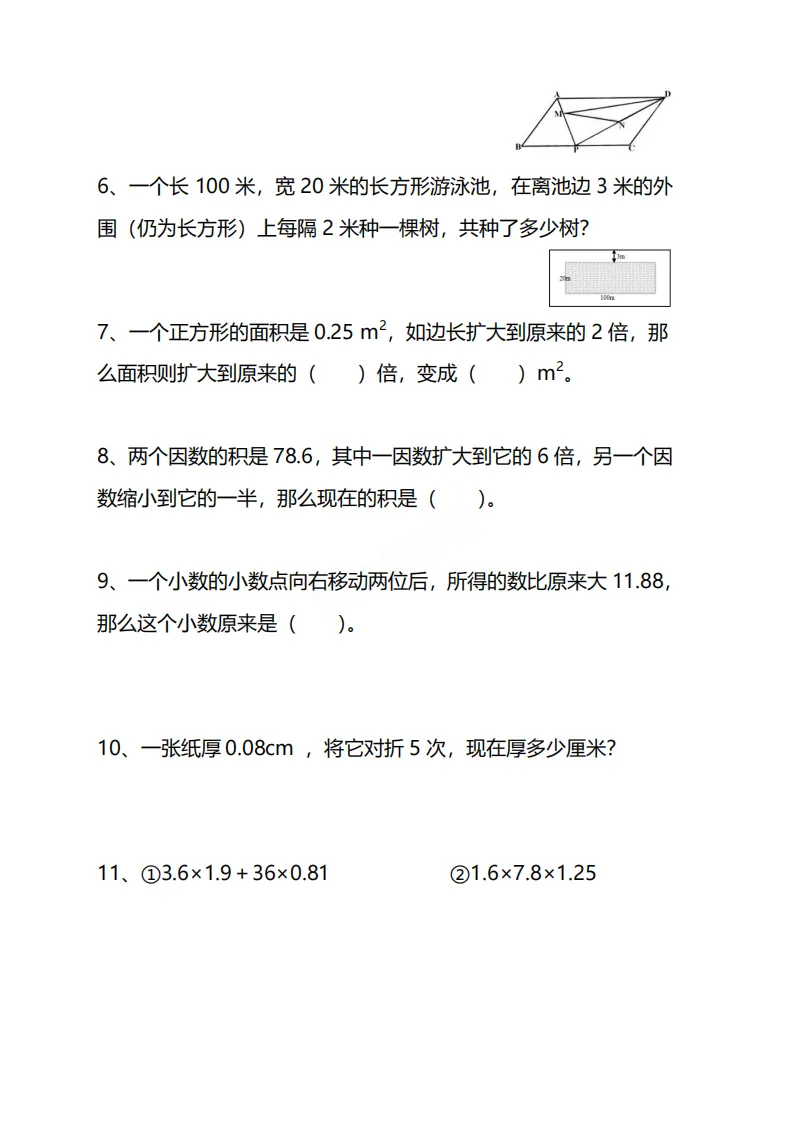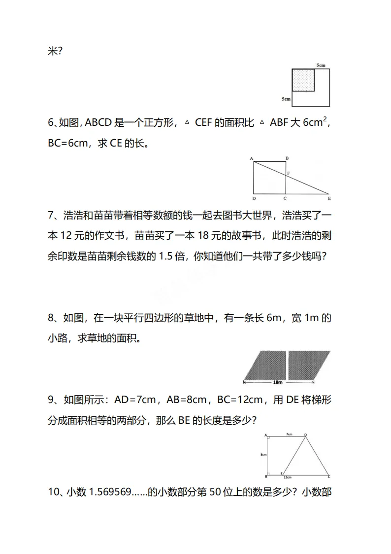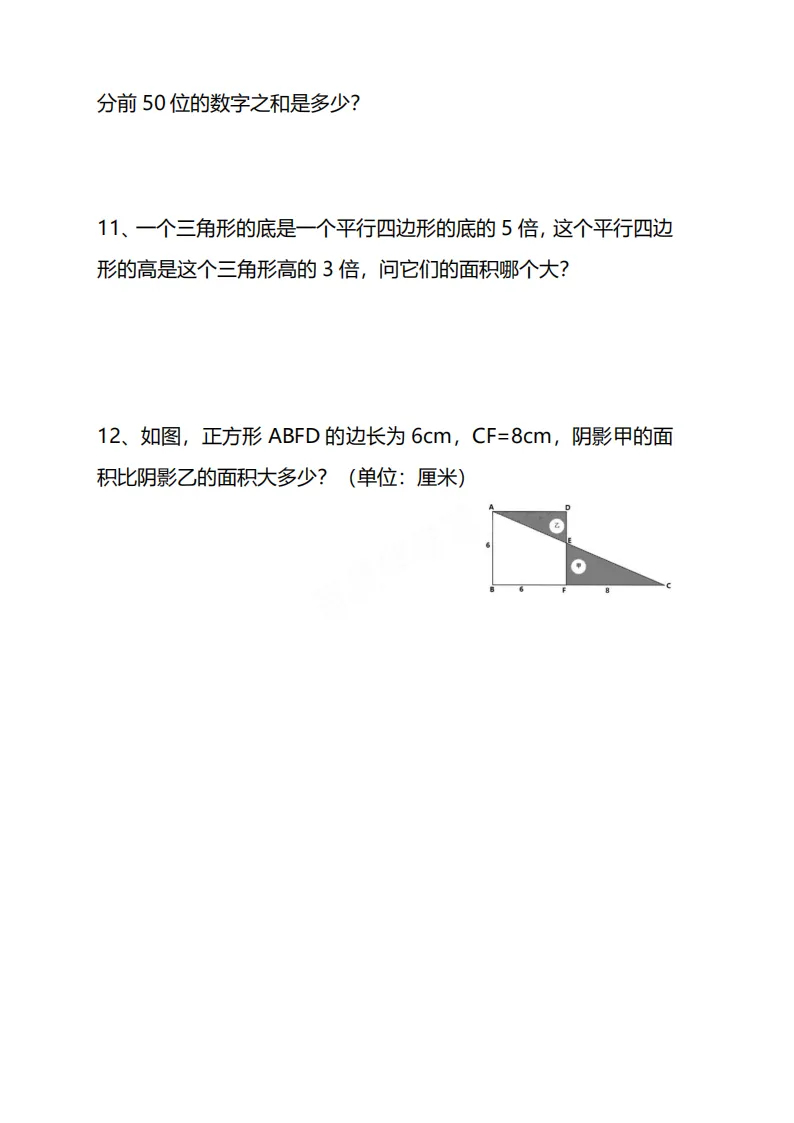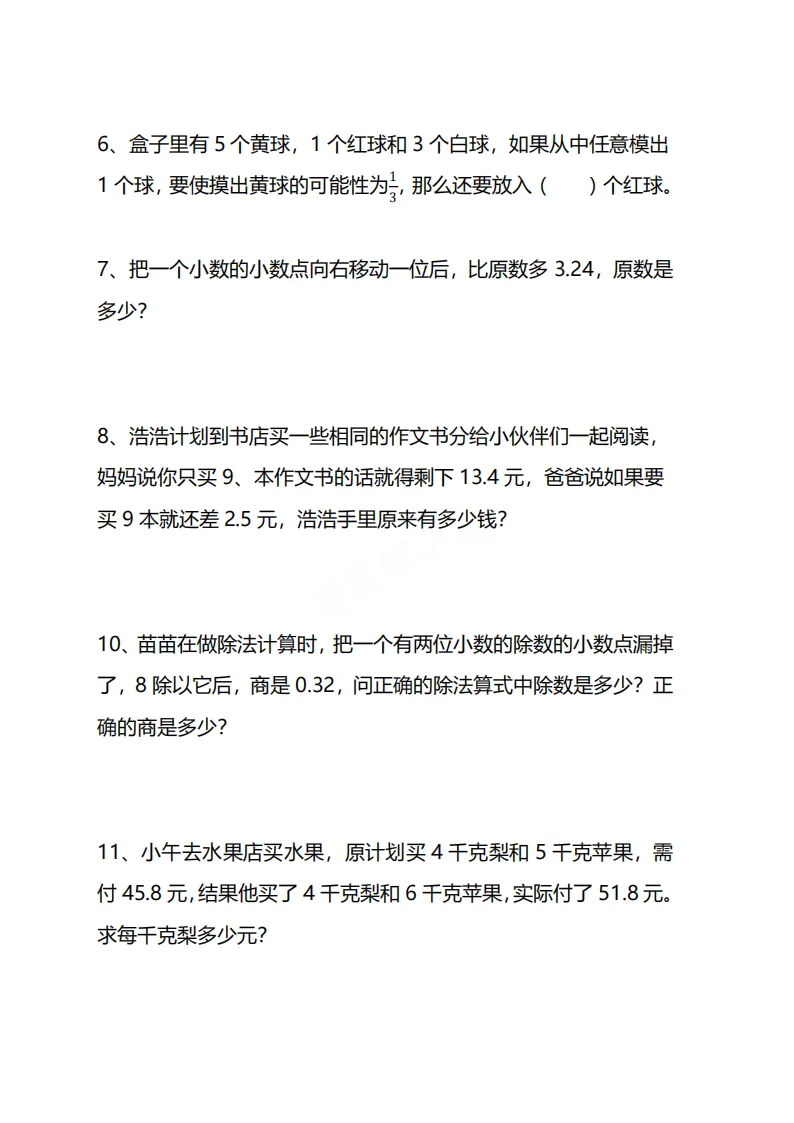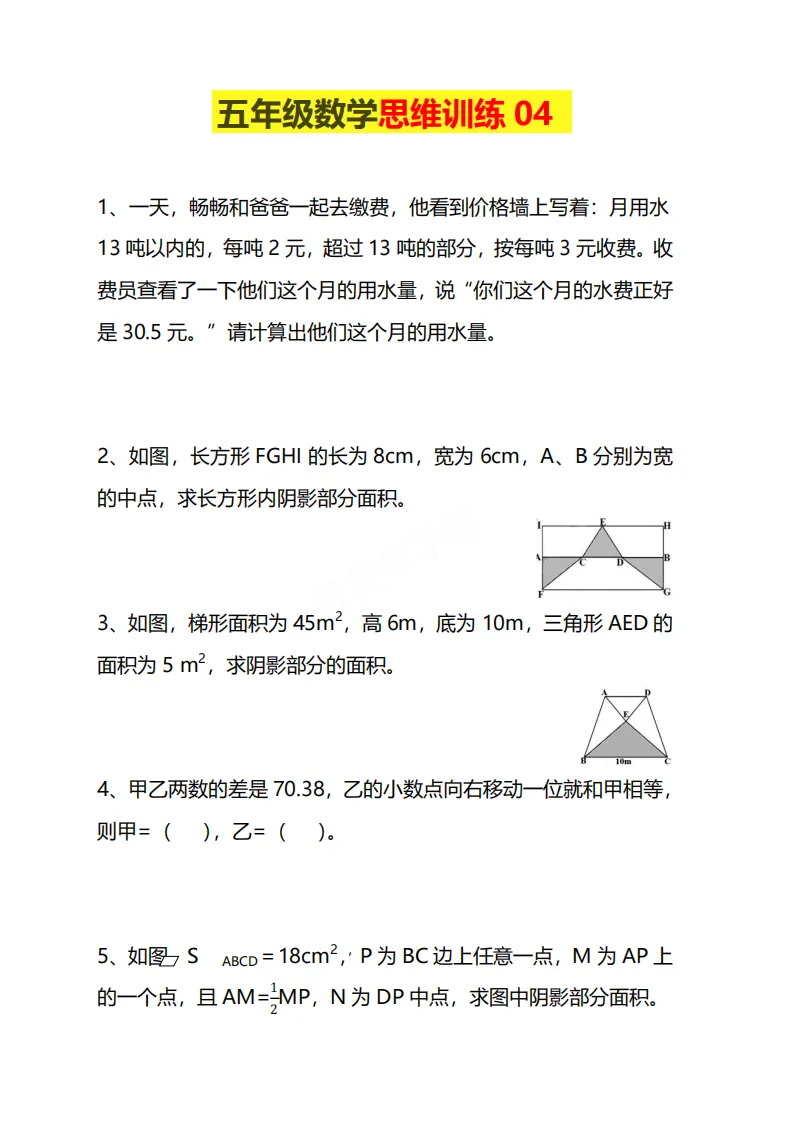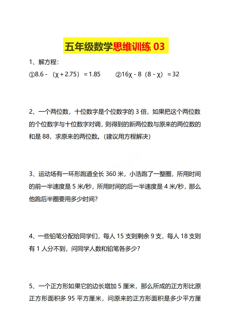 🌸今天给家长分享的是:26五年级下册数学《思维训练题》|电子版可打印