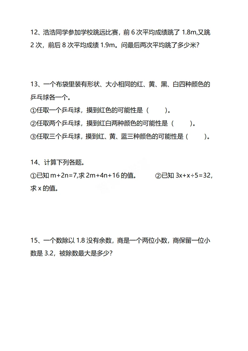26五年级下册数学《思维训练题》|电子版可打印