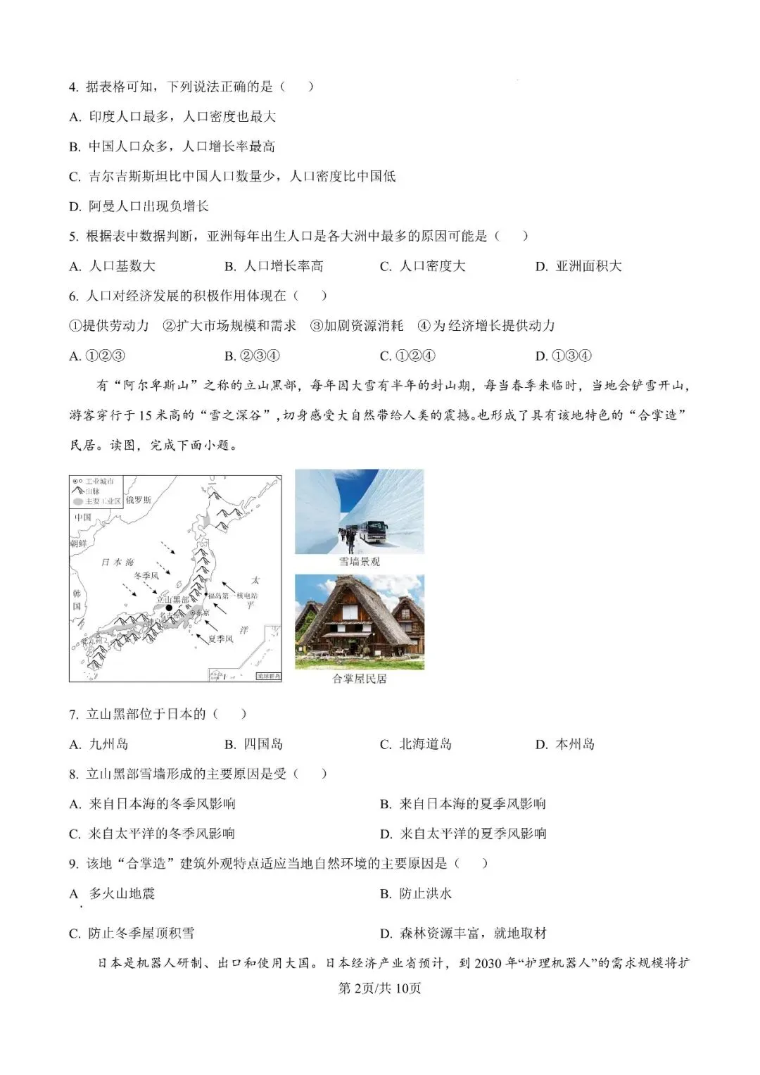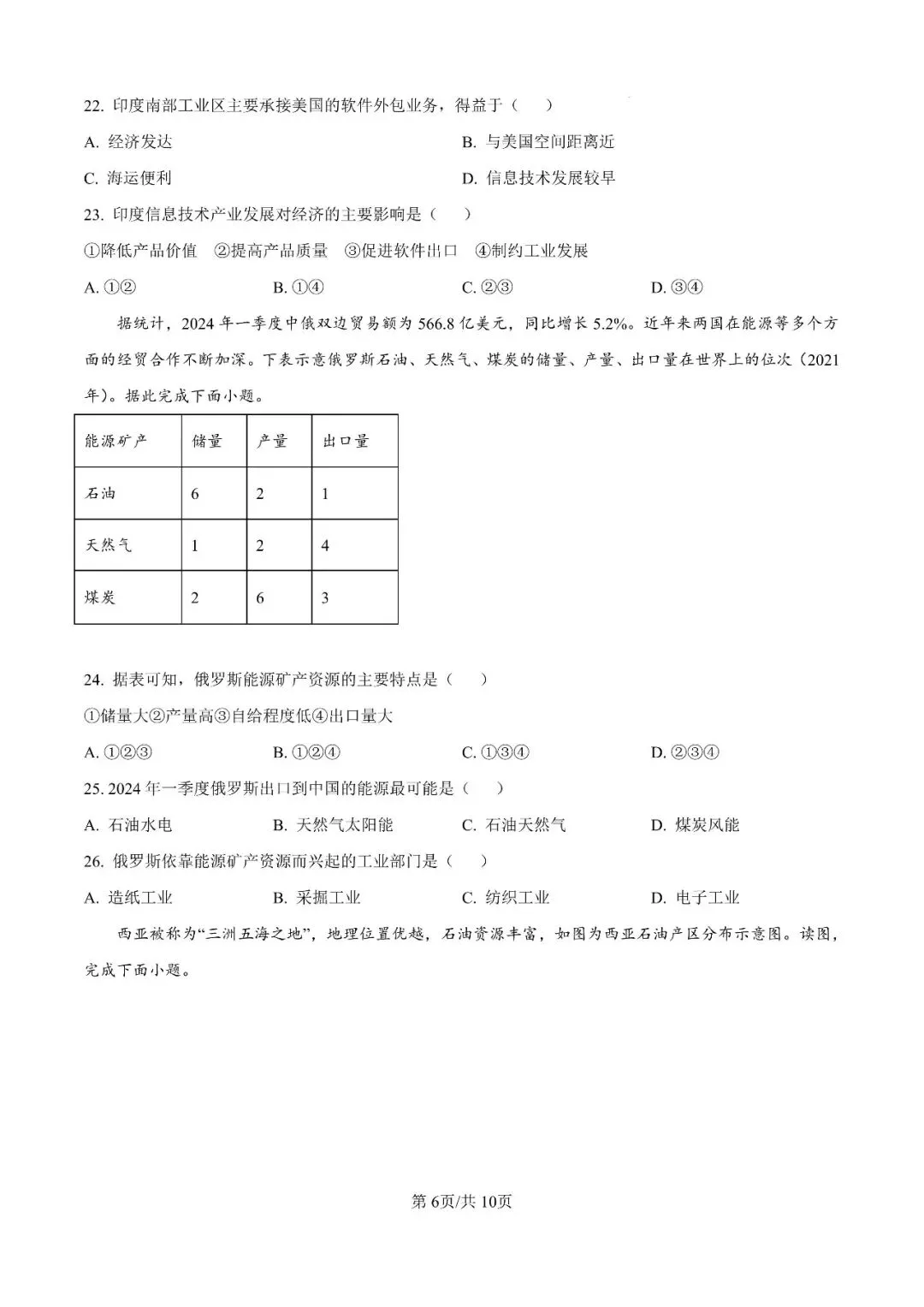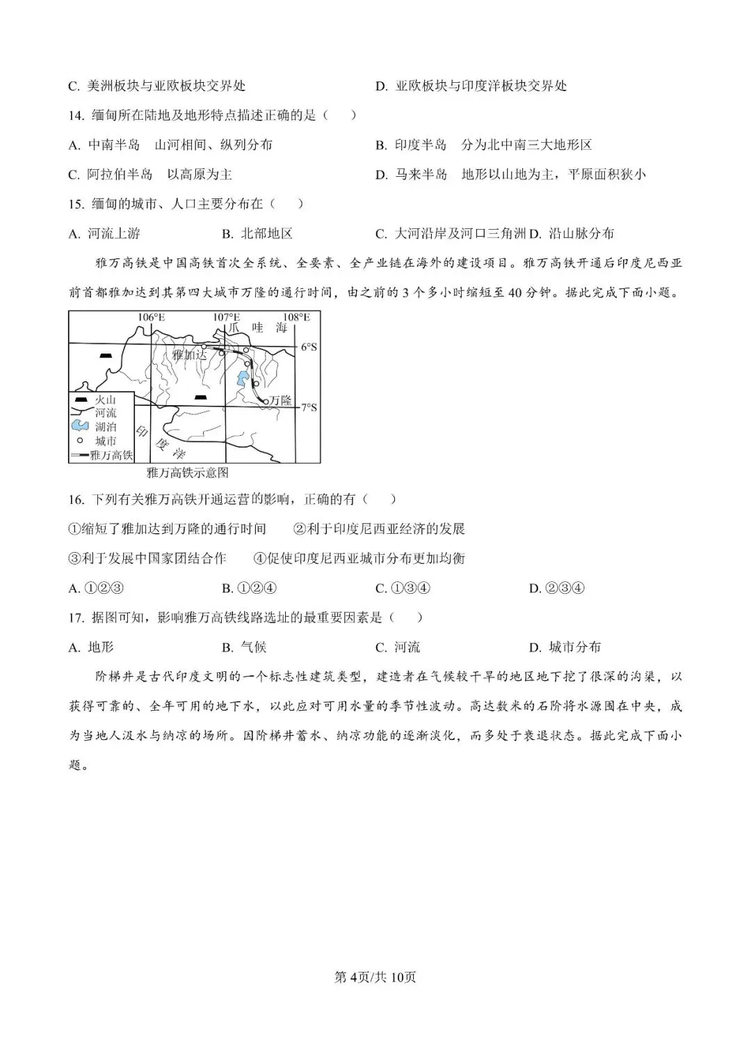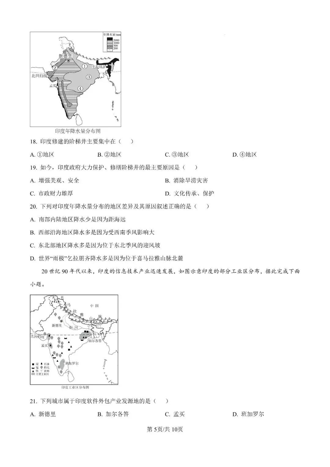邯郸市第25中学七下期中【地理】卷-可打印(有答案)