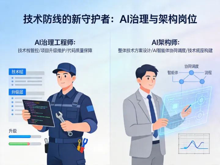 随着AI技术在软件开发中的深度应用,AI治理工程师和AI架构师逐渐成为技术团队中的核心角色,共同搭建AI化开发的技术底座,保障系统的稳定与高效。