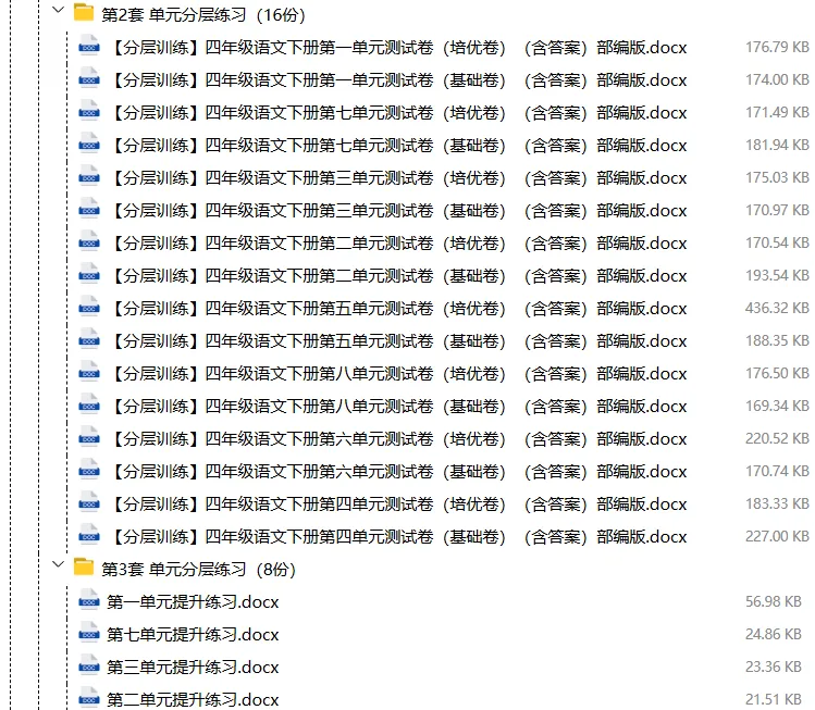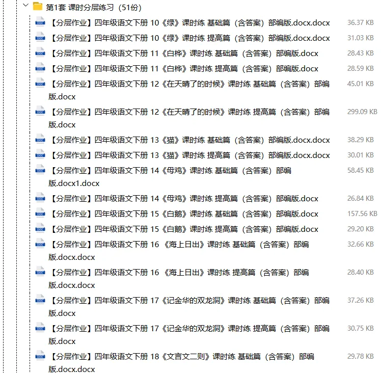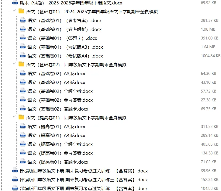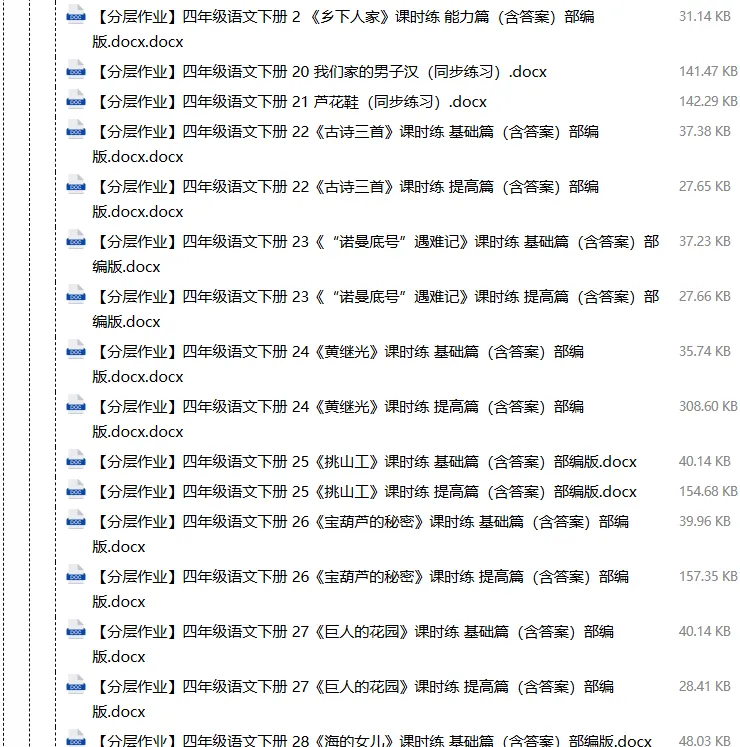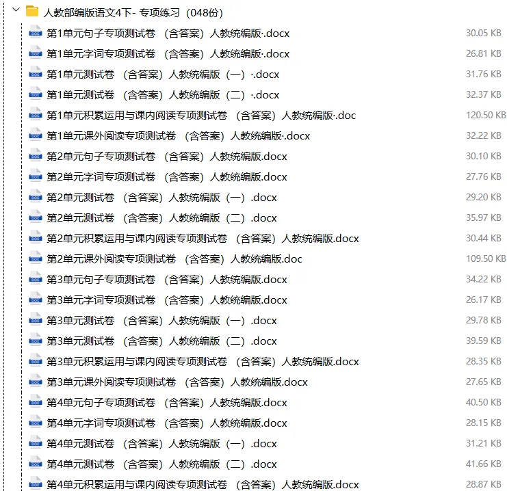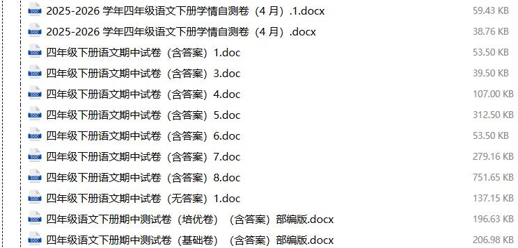 【电子版】2026春人教部编版小学四年级语文下册 (课时练习+单元测试+月考试卷+期中试卷+期末试卷)全套下载 可编辑打印