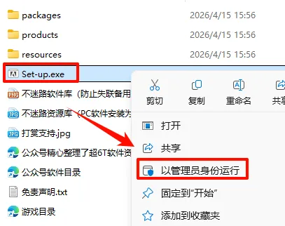 2.打开刚刚解压的文件夹,鼠标右键点击“Set-up.exe”选择“以管理员身份运行”