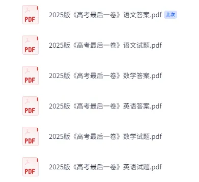 高中语数英《高考最后一卷》2025版,网盘打包下载,推荐收藏(语文数学英语) 高中高考最后一卷 (网盘下载链接) 资源介绍 高中语数英《高考最后一卷》2025版 电子版PDF文档(可下载打印) 网盘下载链接详见页面底部 ▼资源展示▼ 版面所限,此处仅展示部分内容 更多内容请自行下载观看 网盘下载 下载方法 扫码保存资源到自己网盘账号 登录夸克网盘APP即可下载 版权声明: 本资源为免费分享,仅供学习和教学使用 版权归原作者所有,如有侵权请联系删除