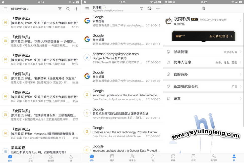 老夜作为较早的体验用户,早期的邮箱大师APP无论是功能还是界面上都是相当精致的,作为一款免费应用后期总是不可避免会加点广告什么的,新版本的广告泛滥另老夜不得不寻找同类软件替代兜兜转转还是重新用了回来。由于邮件涉及到个人信息安全等因素也不敢使用来历不明的第三方,但是看着各种穿插式的广告也是非常影响体验,早之前就跟小伙伴们说过Google play是安卓最干净的应用商店,因为有着足够高的上架要求和限制所以普遍上国际版要比我们平时用的官方版本要干净清爽的多,因此老夜特意溜达一圈将邮箱大师APP国际版下载后与大家分享。