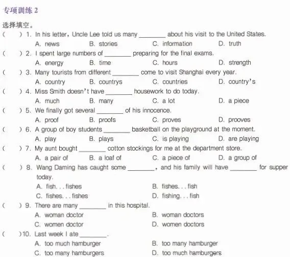 初中7-9年级英语《语法练习题》含答案,可下载打印