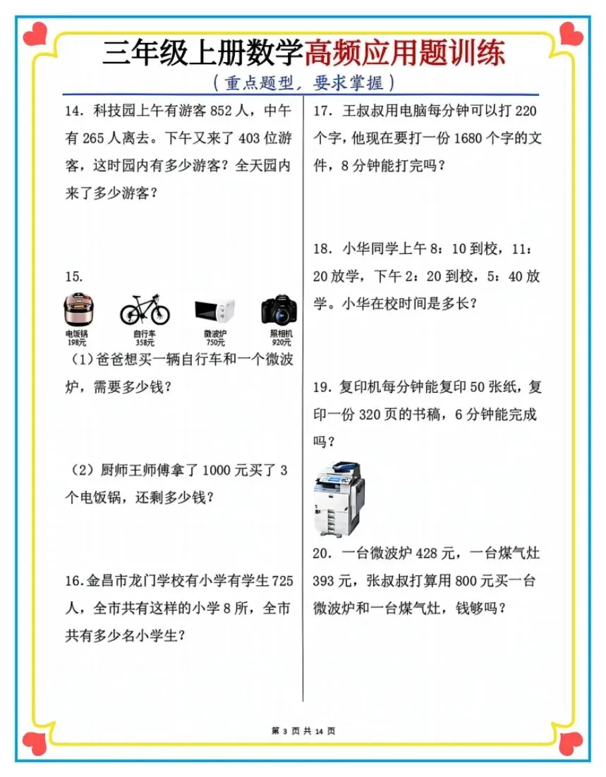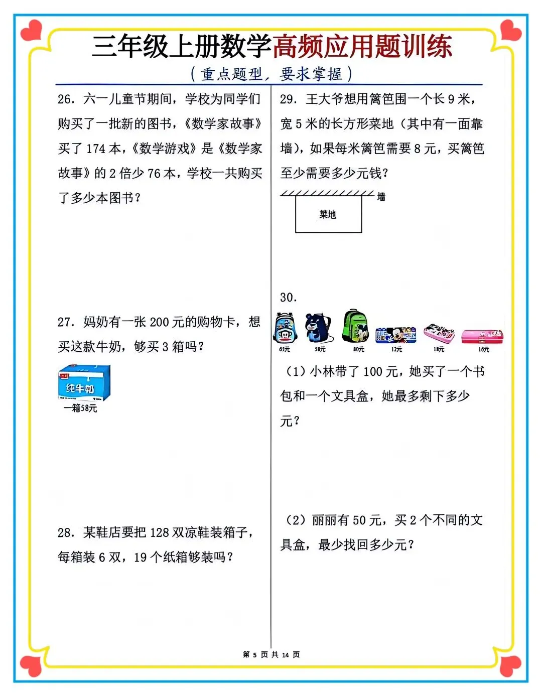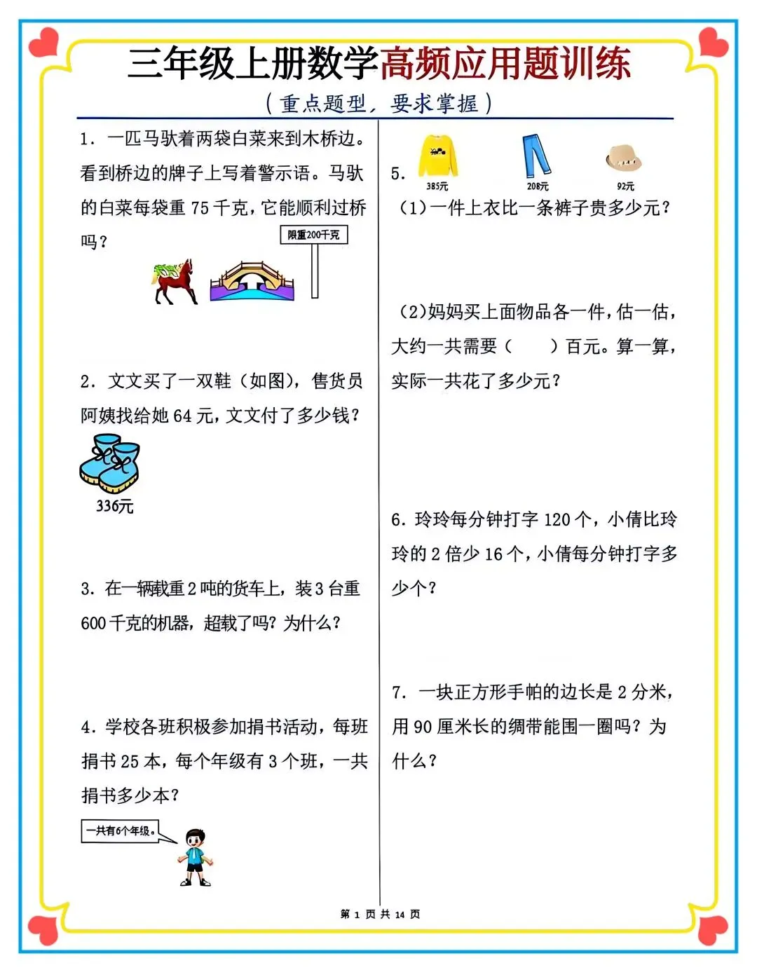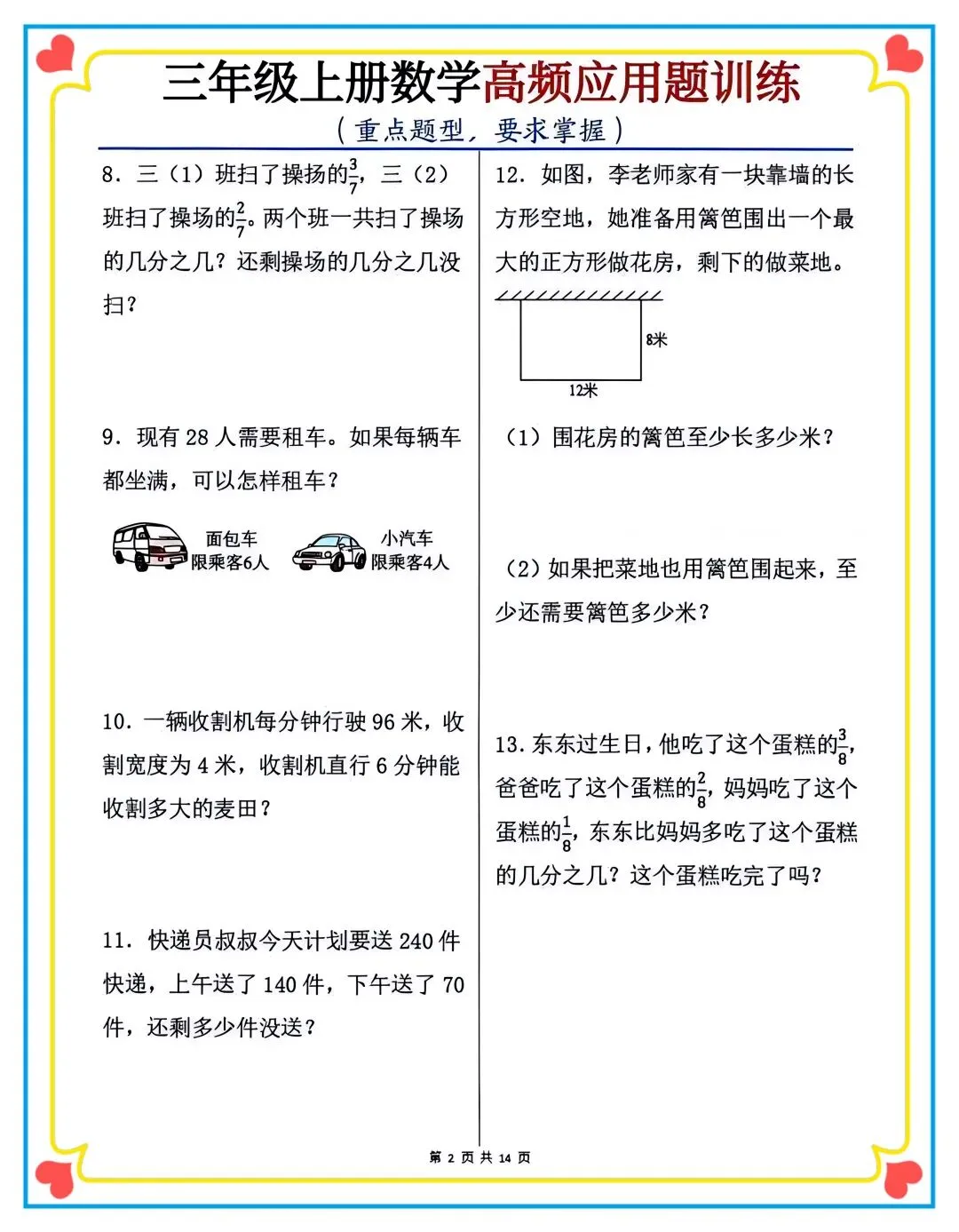 2025秋最新版:《三年级数学上册应用题》电子版可打印