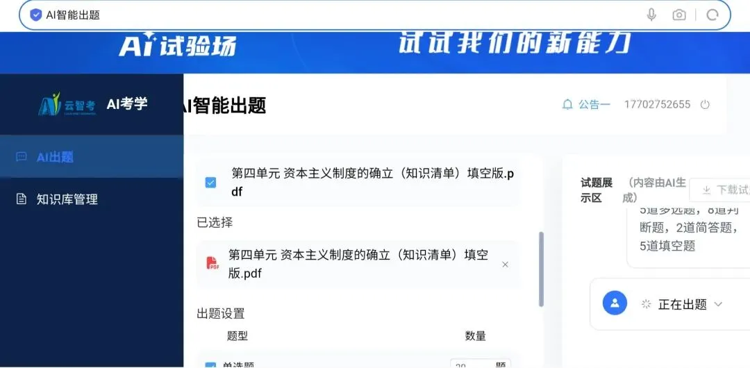 平台AI出题功能主要包含两大核心工具: