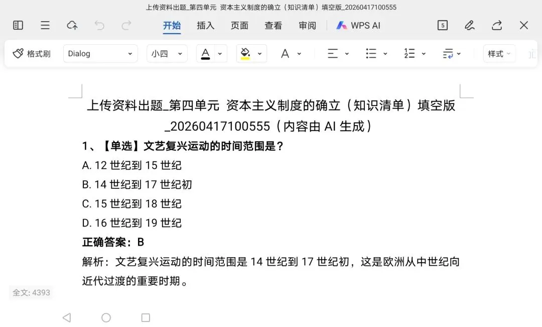 5. 获取结果:提交后等待1-3分钟,AI会生成题目,可直接一键复制到文档中使用。