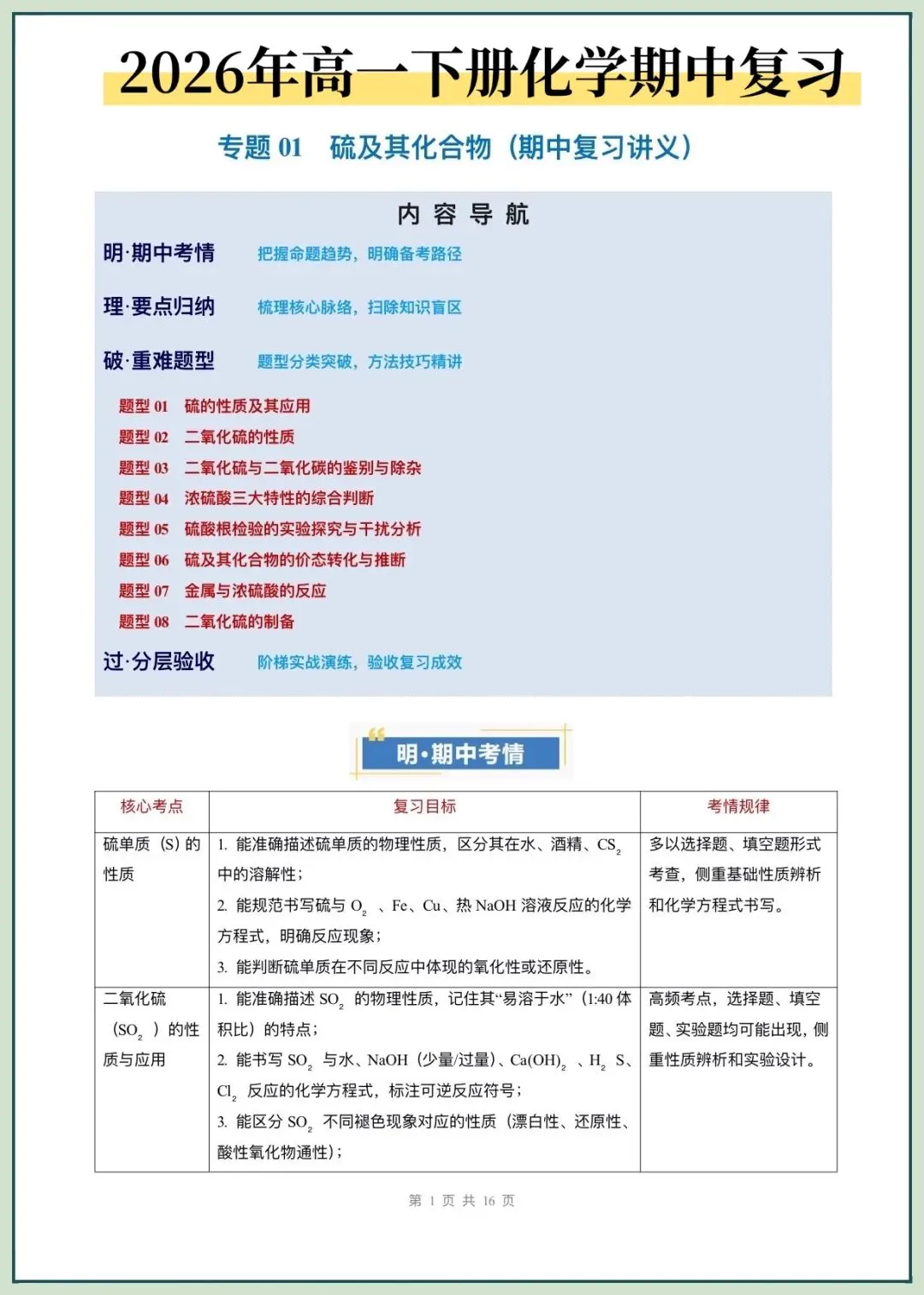 2026新版高一下册必修二化学(人教A版)期中复习讲义,电子版可打印下载!