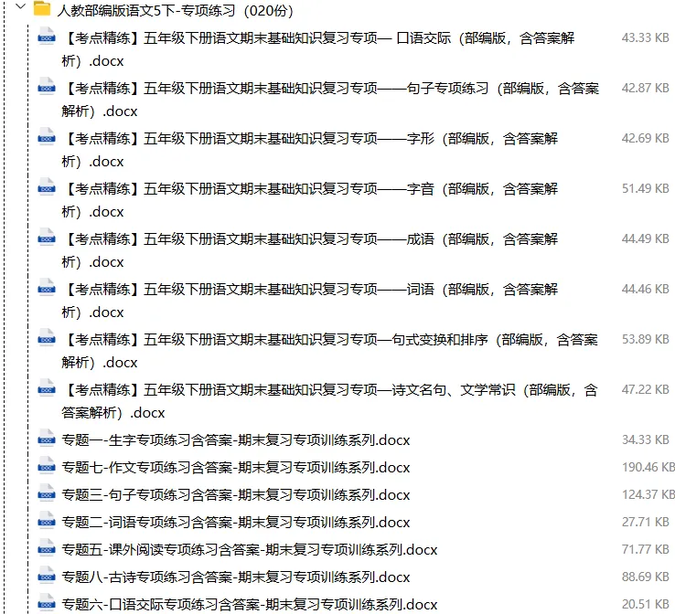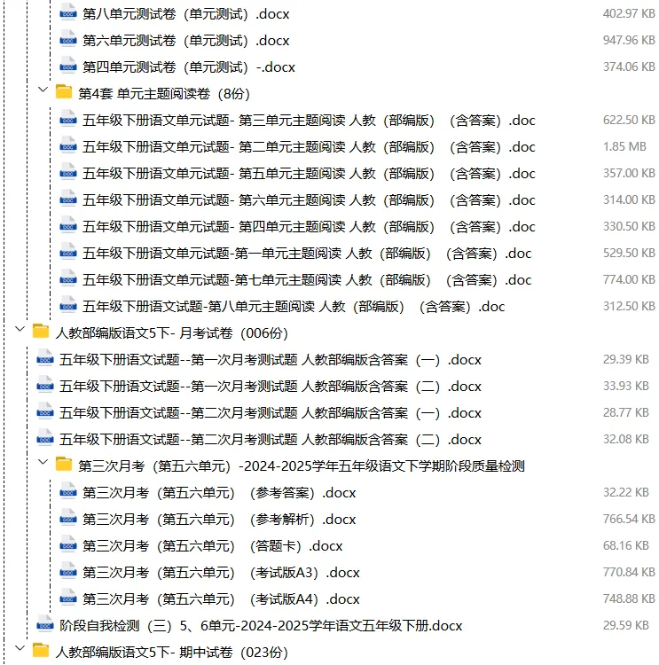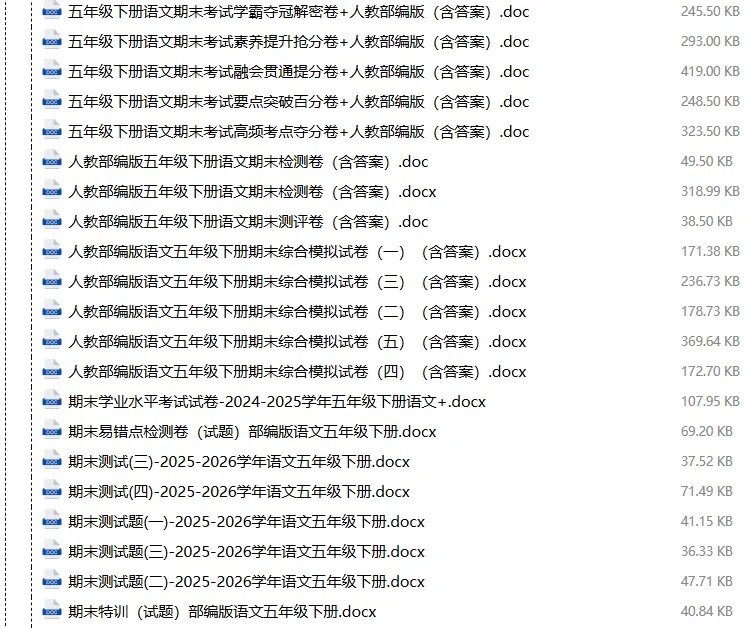 【电子版】2026春人教部编版小学五年级语文下册 (课时练习+单元测试+月考试卷+期中试卷+期末试卷)全套下载 可编辑打印