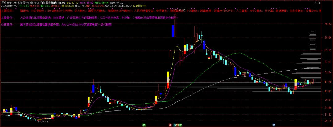 【通达信公式源码】判断获利筹码的分布,是提高胜率的有效依据,以 易点天下 为例.(不构成投资建议)