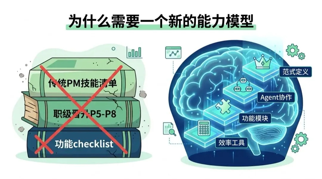 CSDN 上有篇文章总结得很到位:「传统 PM 设计按钮、输入框、弹窗;AI 原生 PM 设计 Agent 能调什么工具、能访问什么知识库、能跟什么外部系统交互。」