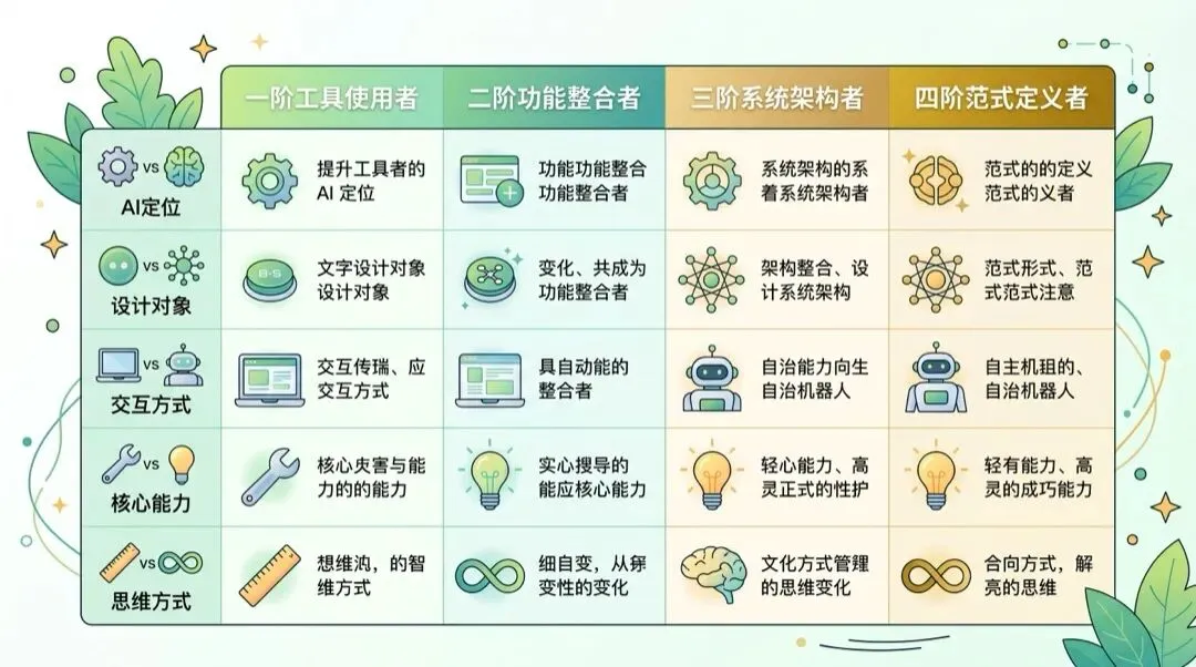 怎么判断:如果你在定规则而不是画功能,如果你在思考系统怎么进化而不是系统长什么样——你到四阶了。