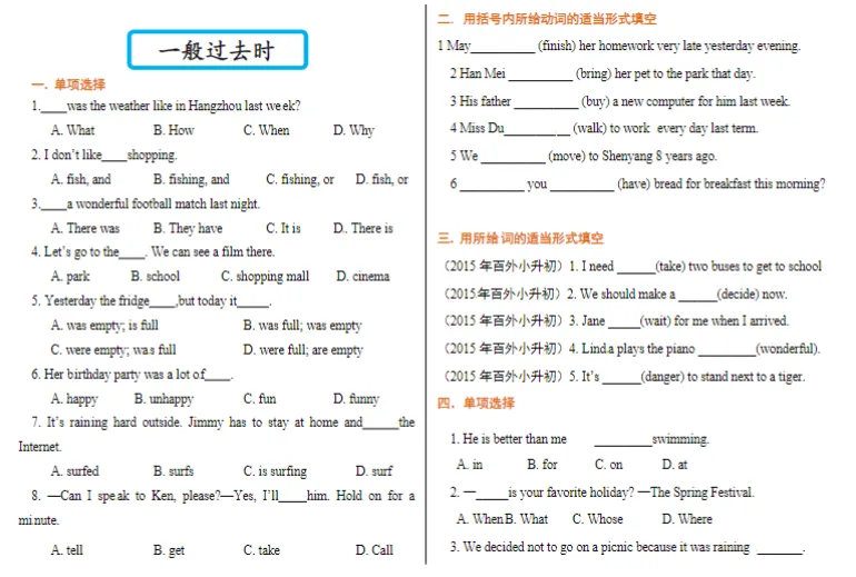 小升初专项练习–一般过去时(可下载) 通过网盘分享的文件:【小升初专项练习】一般过去时 链接: https://pan.baidu.com/s/1qEhXJTzpzzXeMz19qvJ8Eg 提取码: y7dm –来自百度网盘超级会员v4的分享