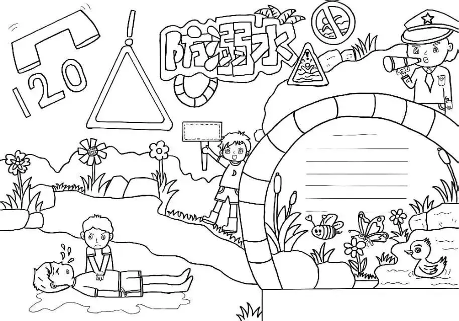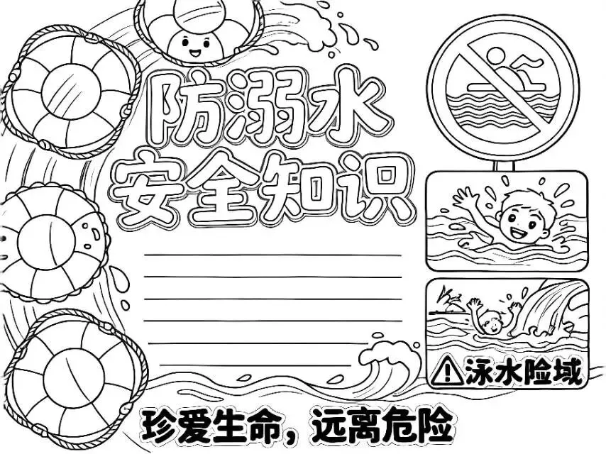 防溺水手抄报|线稿可打印