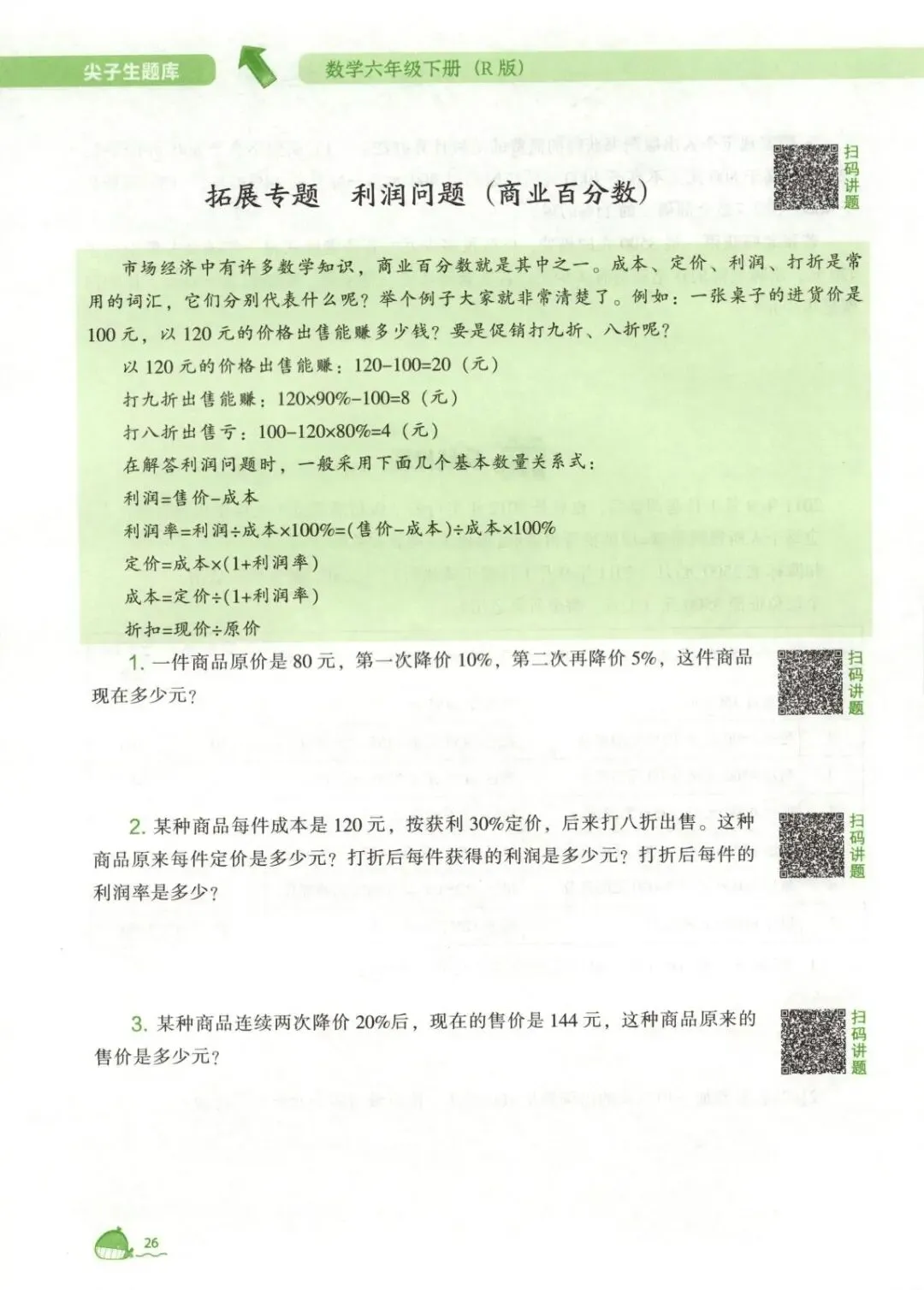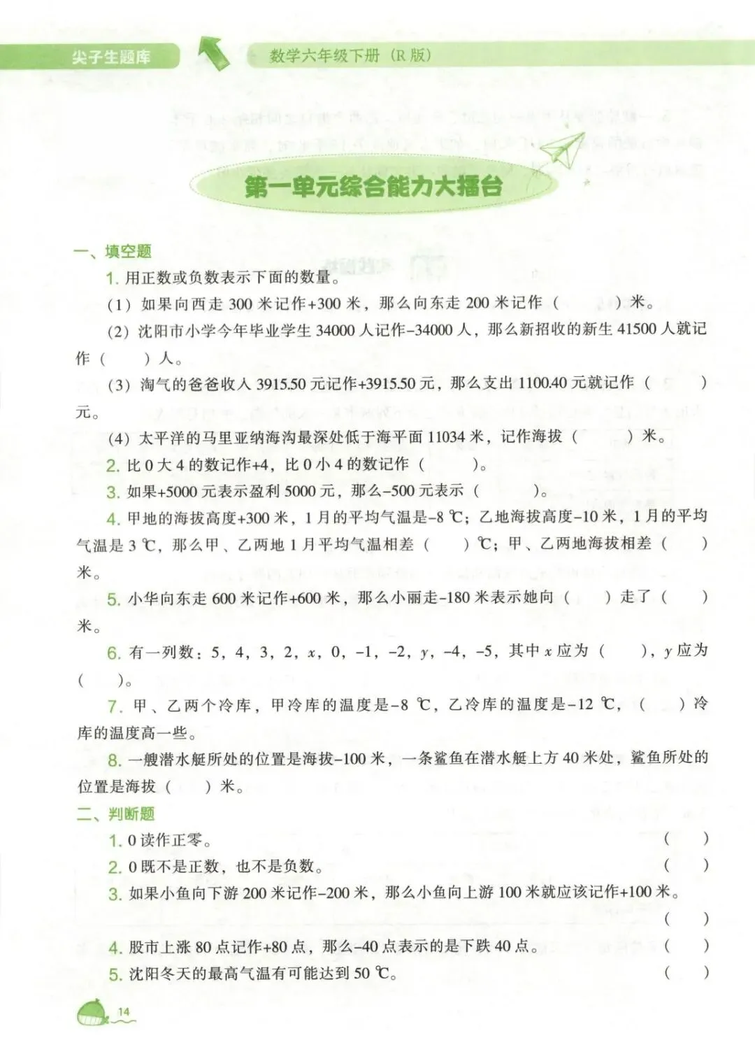 《尖子生题库》人教版数学6年级下册丨pdf电子版,可下载打印