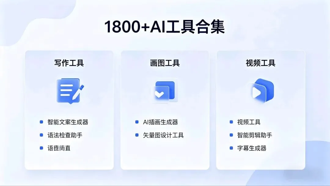 我整理了1800+款AI工具,覆盖30+品类,写作、画图、视频、PPT、数据、配音全覆盖,几乎所有场景都有对应神器。