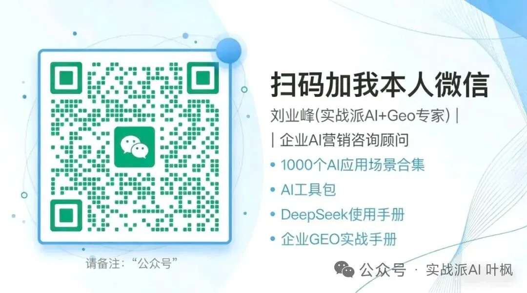 我是实战派AI叶枫,只教你一看就懂、一用就会的实用AI技巧,关注我,紧跟AI红利,轻松提升竞争力!