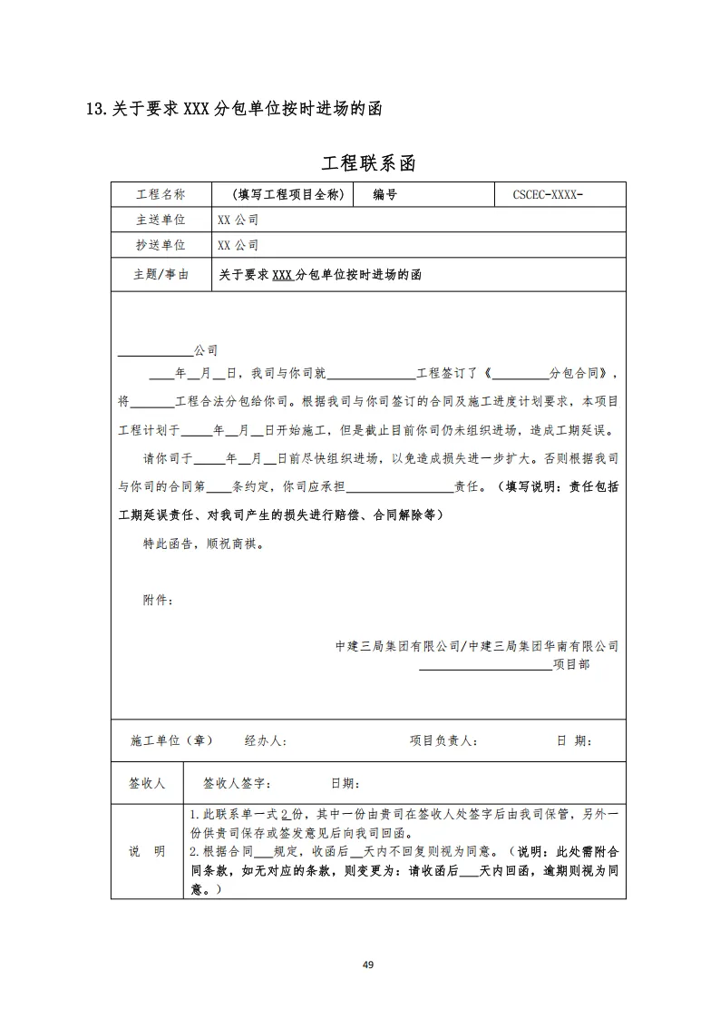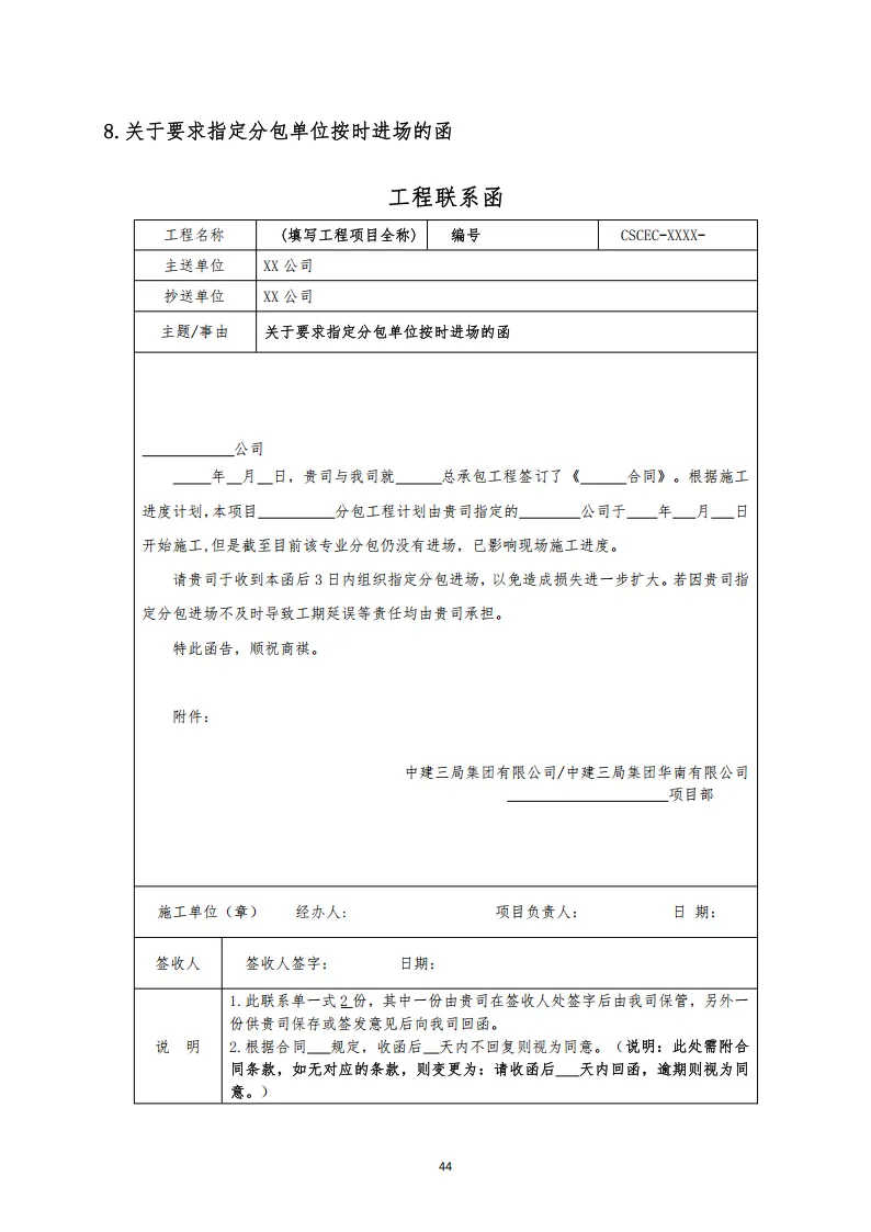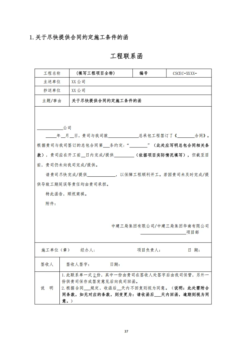中建项目函件示范文本汇编 可下载