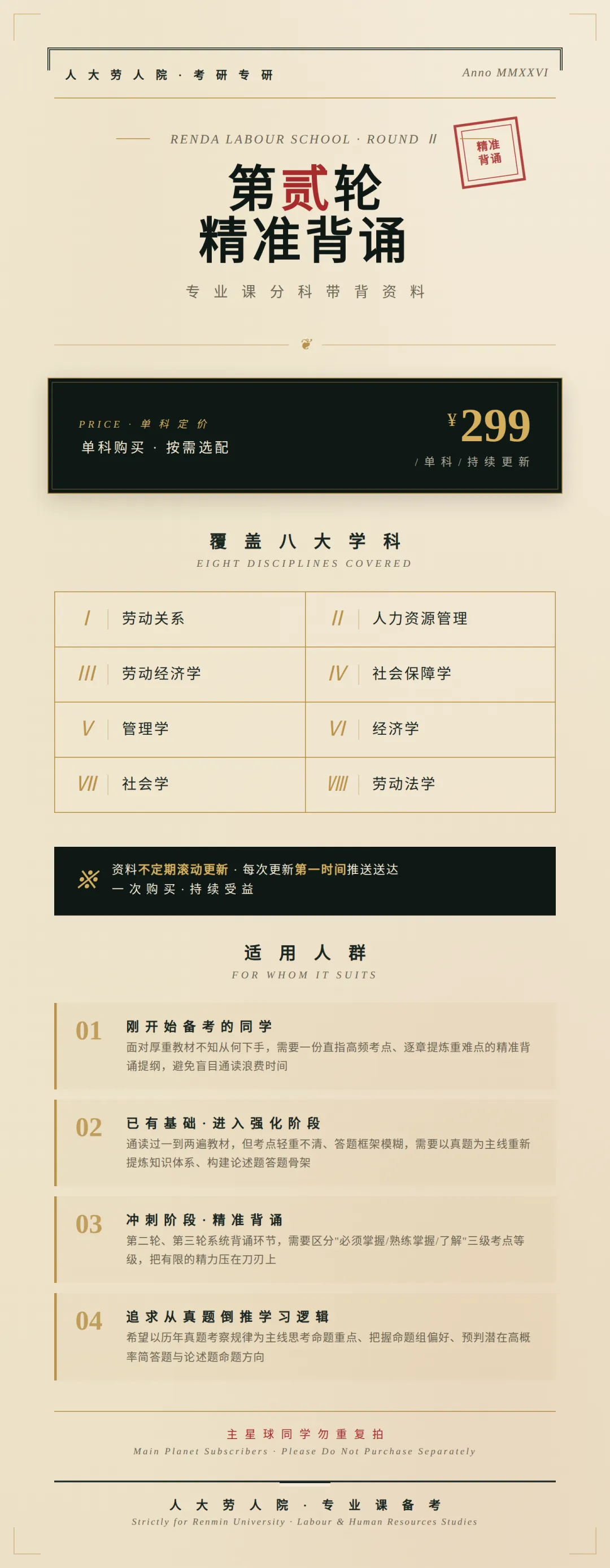劳经、人力、劳关相关章节的背诵预览已经在小红书更新,各科前1或2章可以免费下载学习(选择4科的同学足够1-2个月的背诵量)