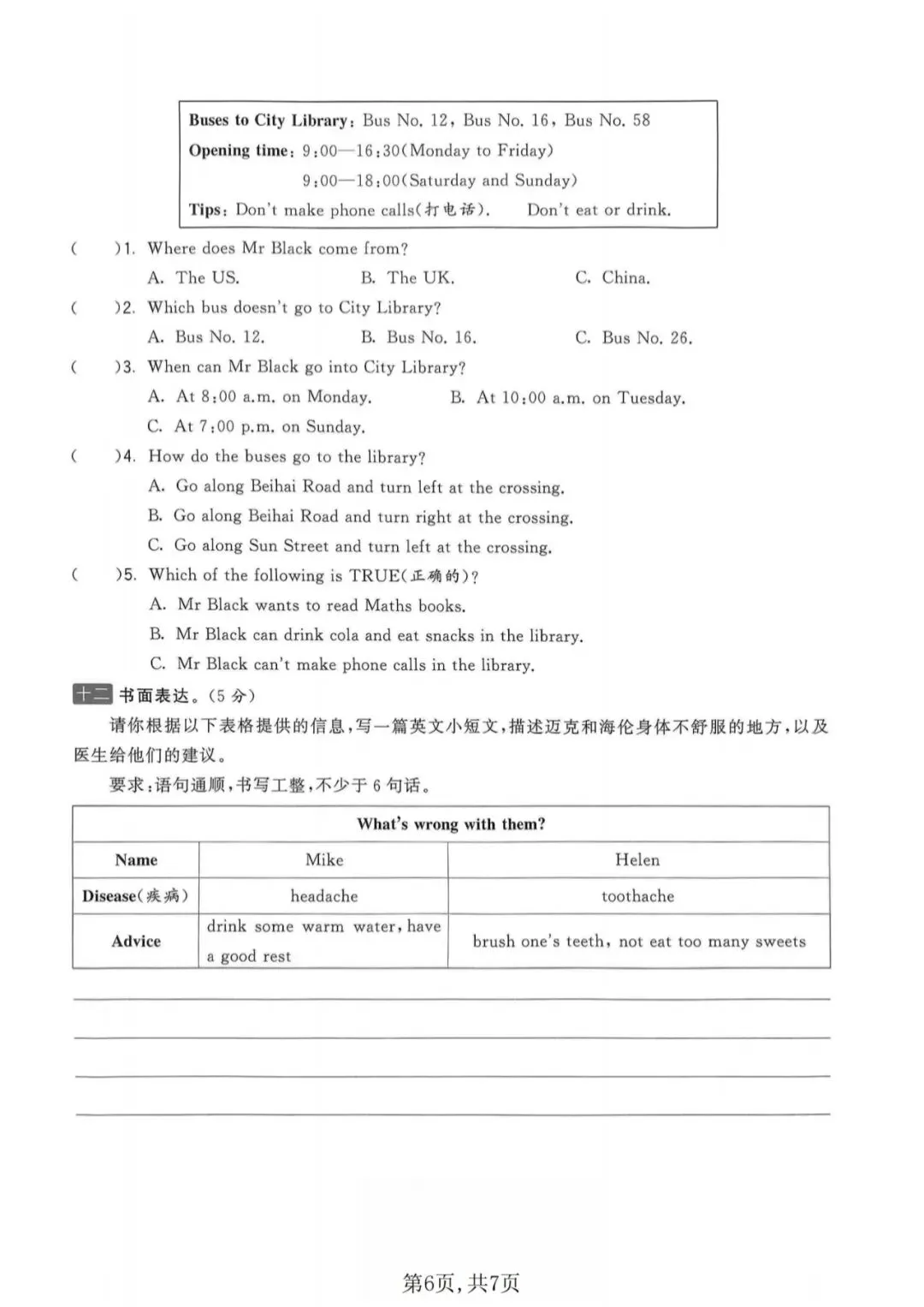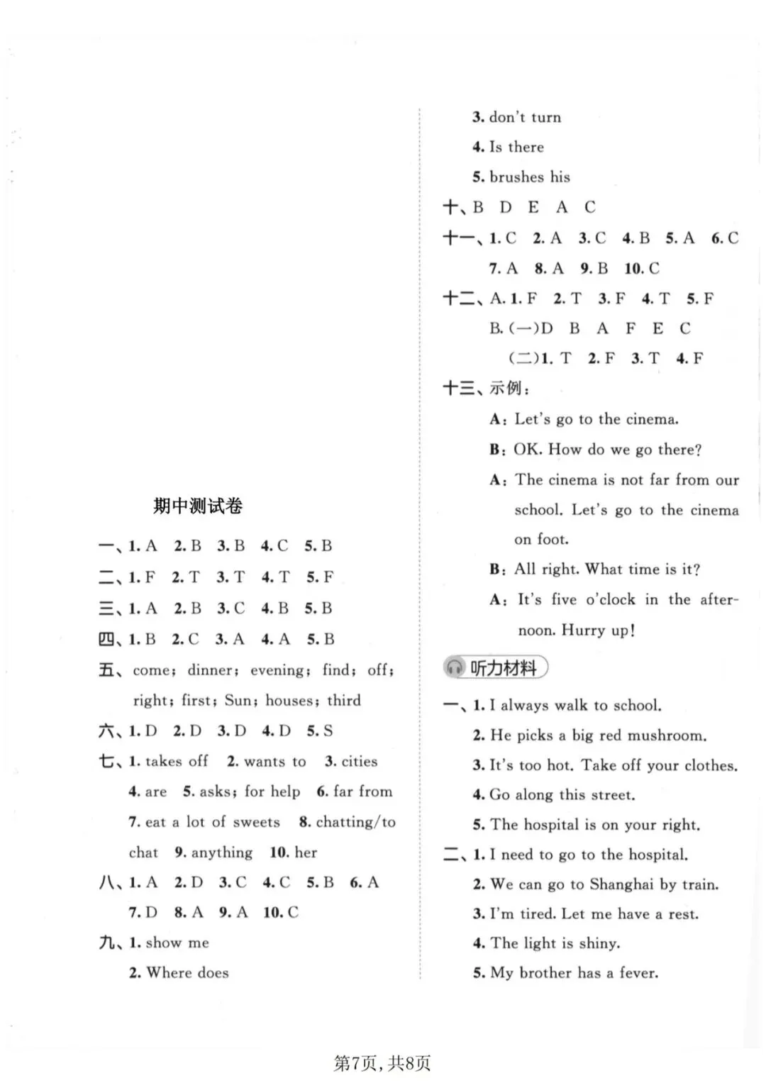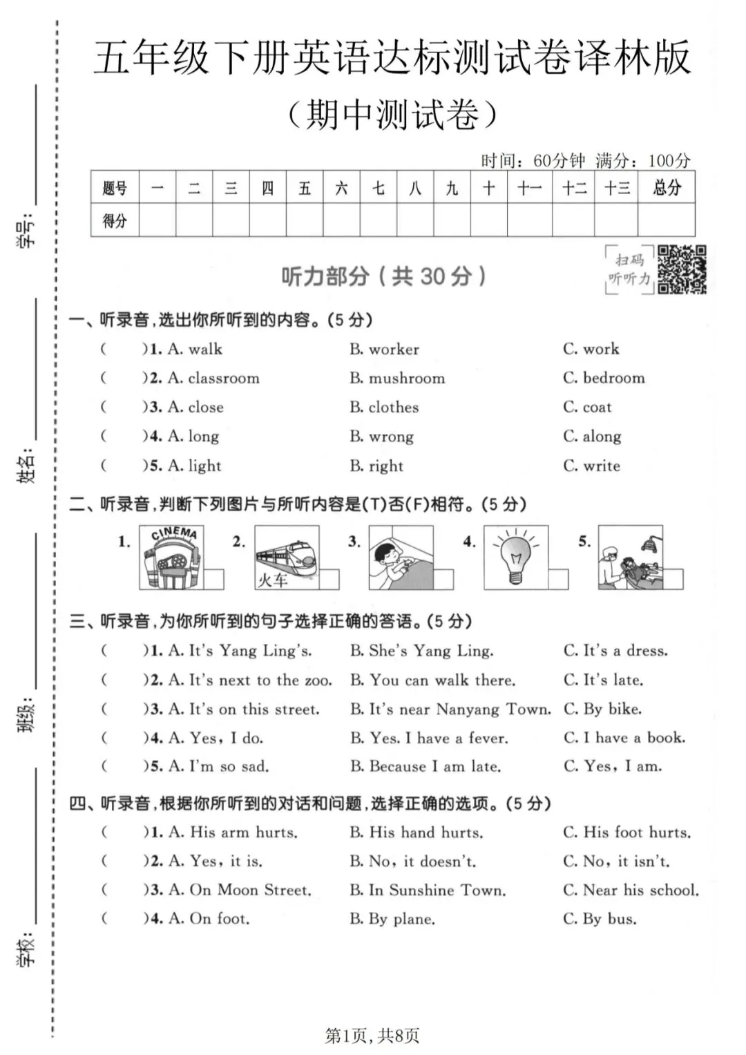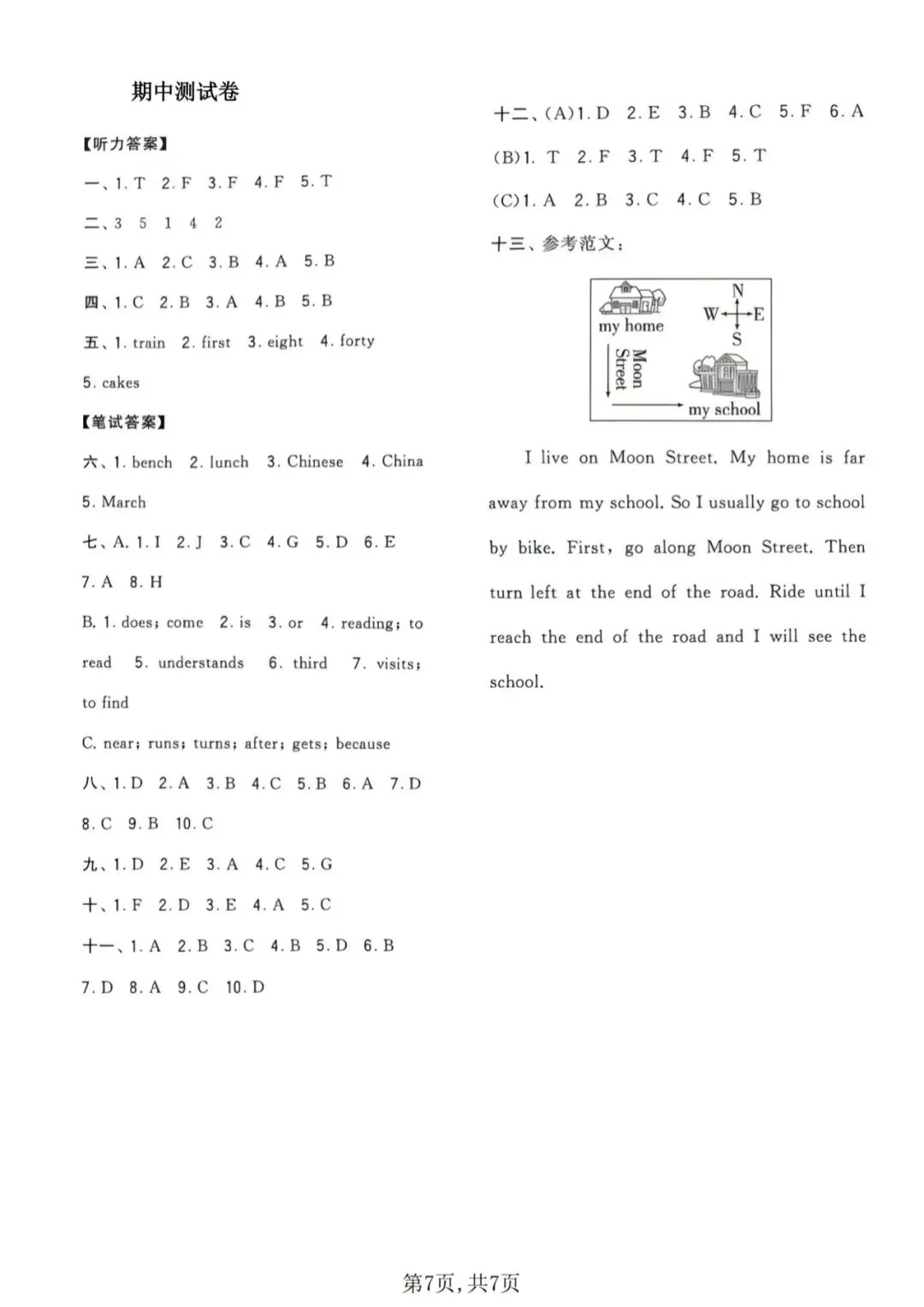 🍎五下英语《期中测试卷》(译林版)