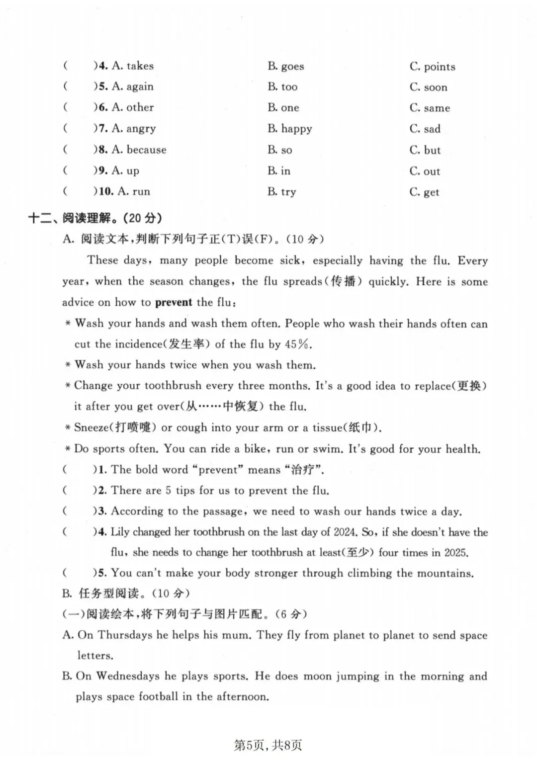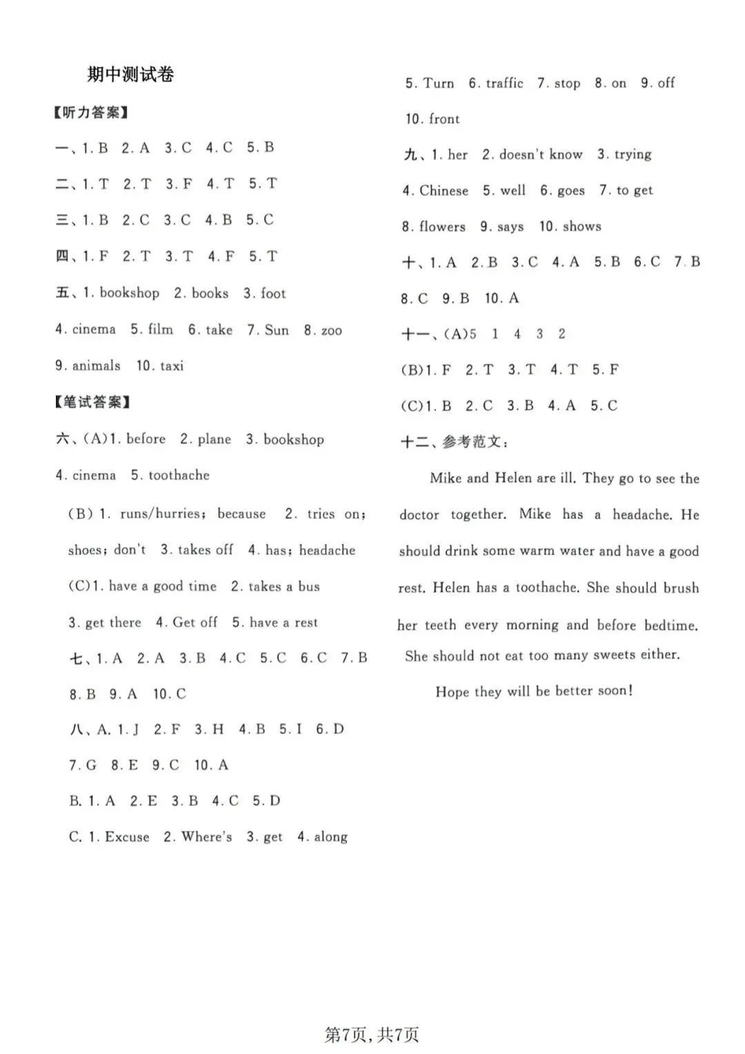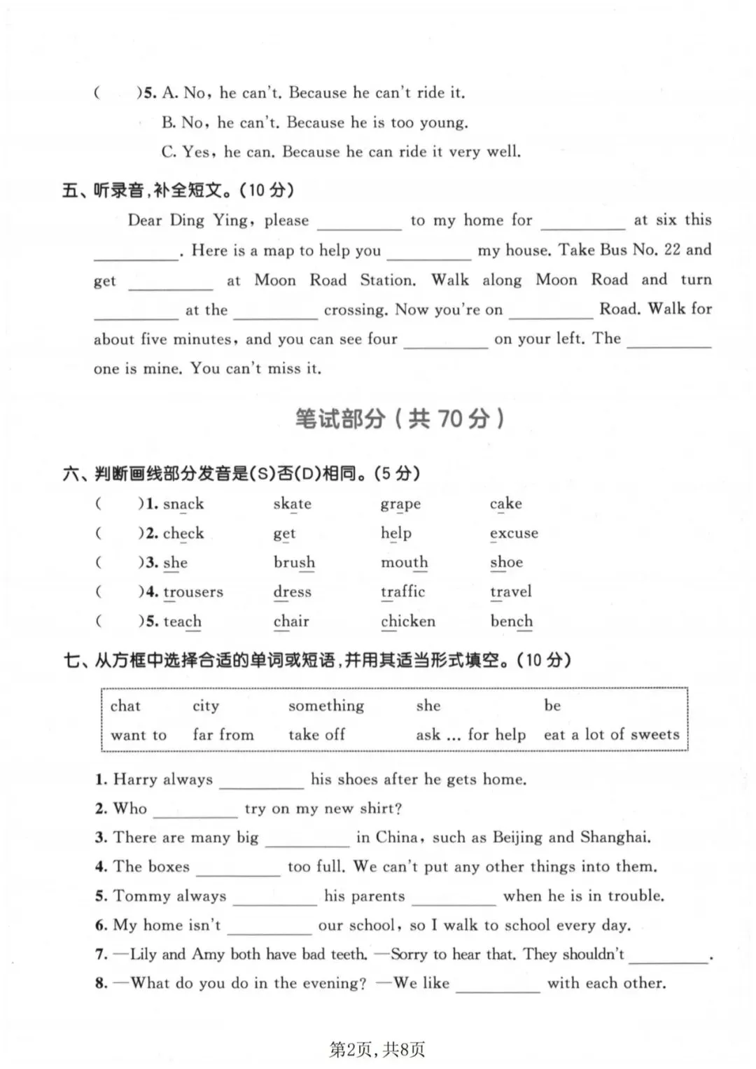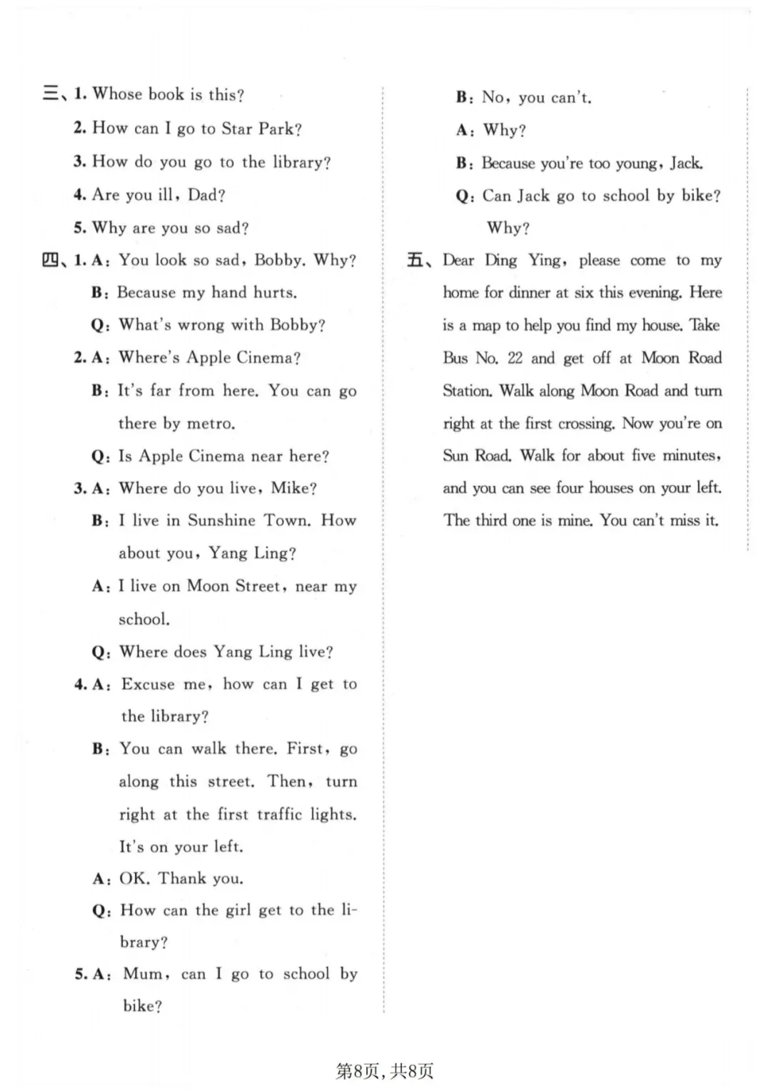 🍎五下英语《期中测试卷》(译林版)