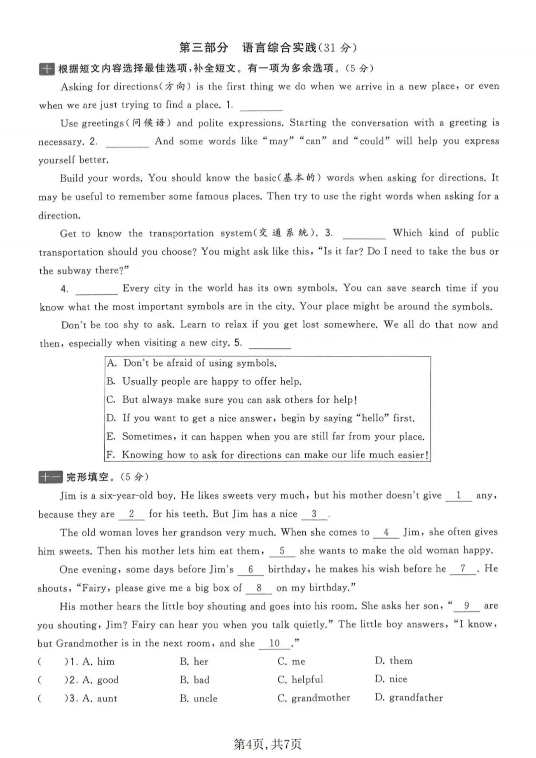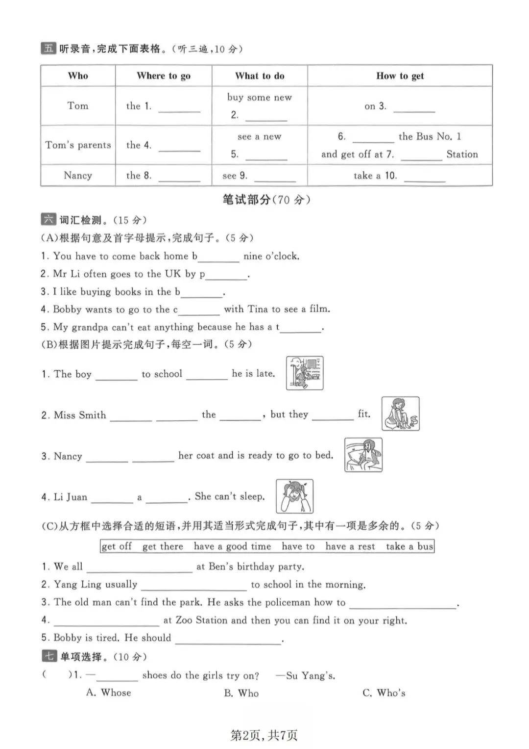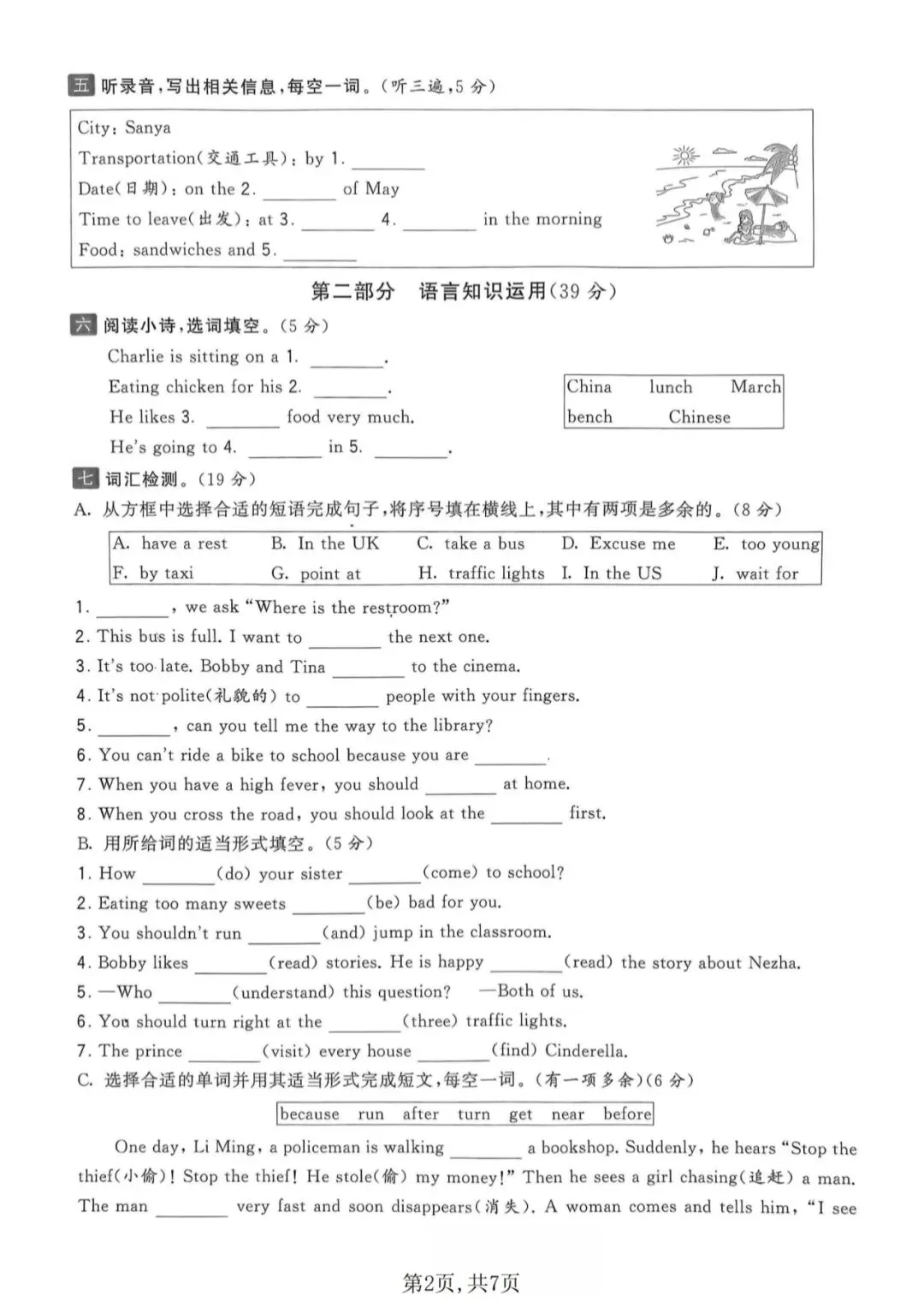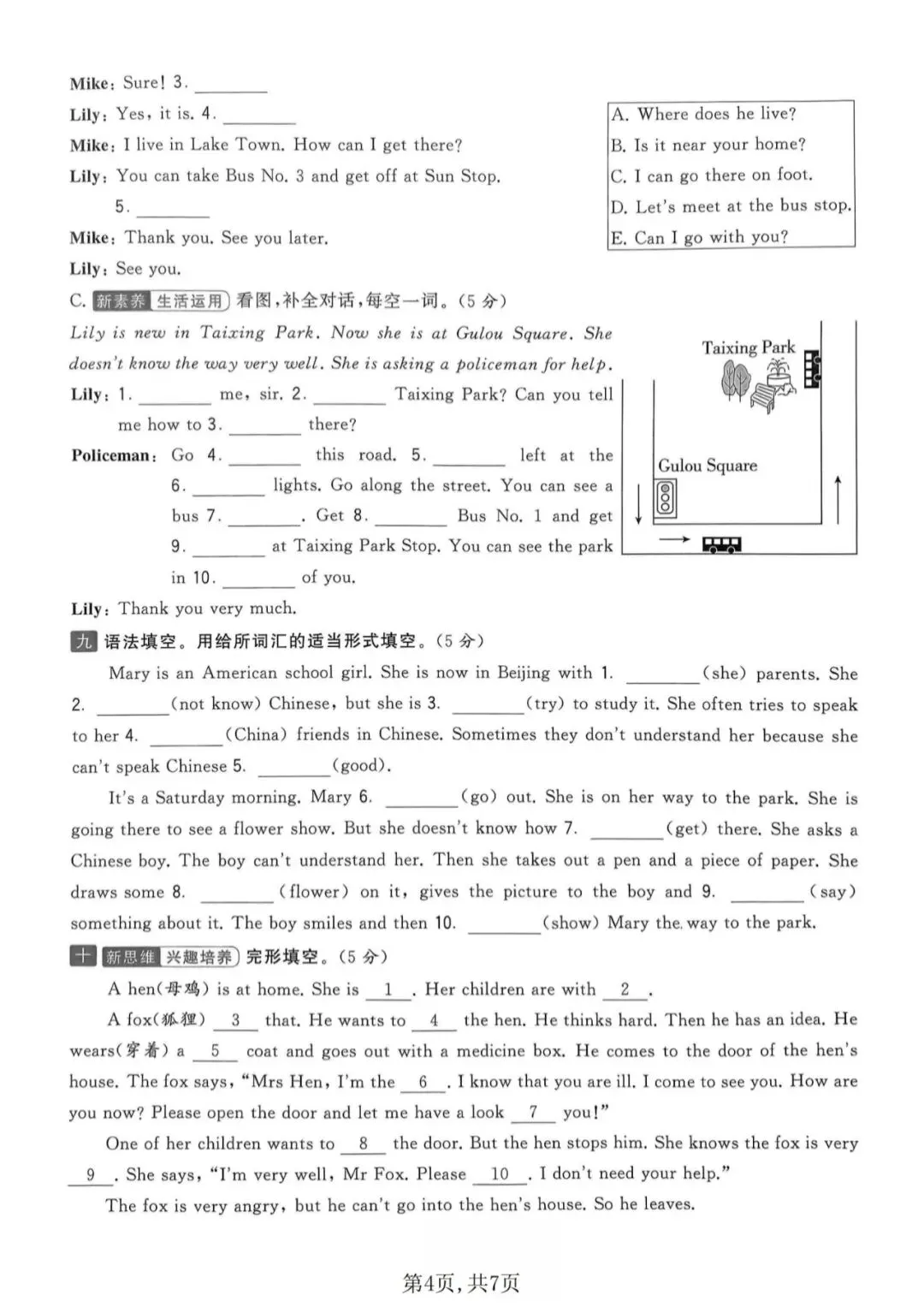 🍎五下英语《期中测试卷》(译林版)