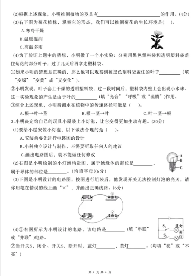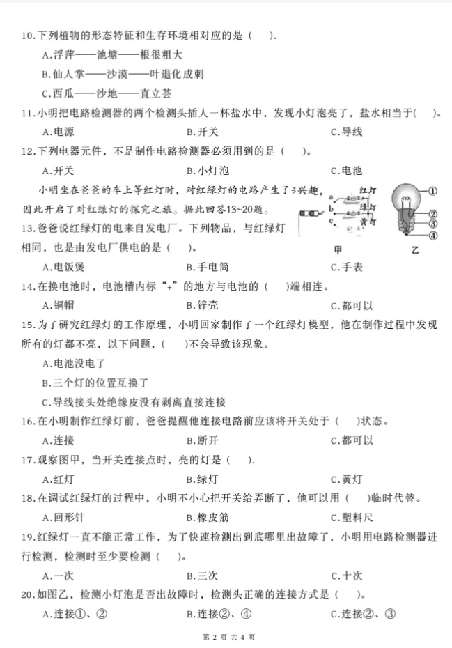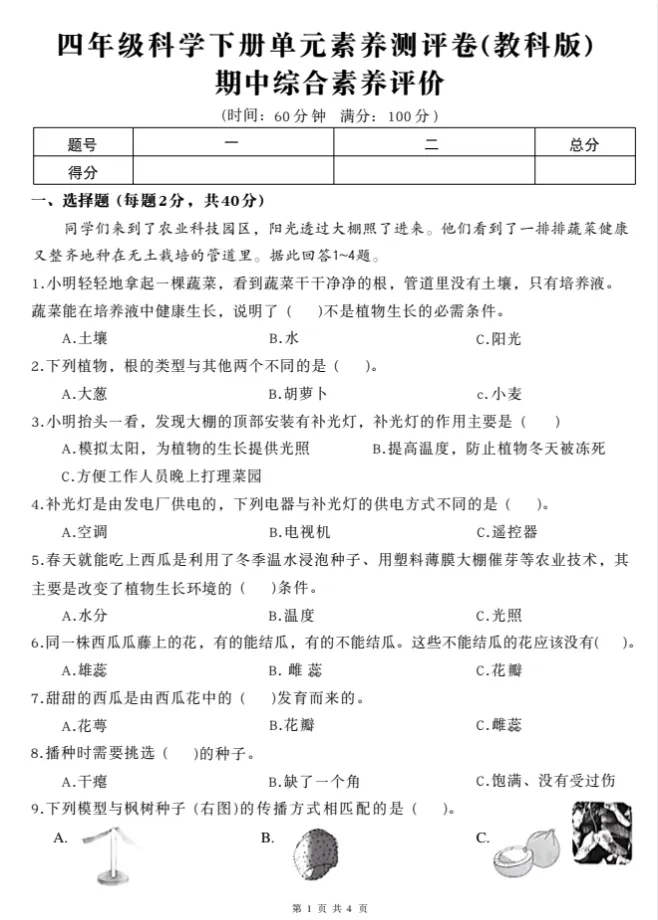26春教科版科学《期中测试卷》1-6年级下册 一二三四五六年级 PDF(可下载)